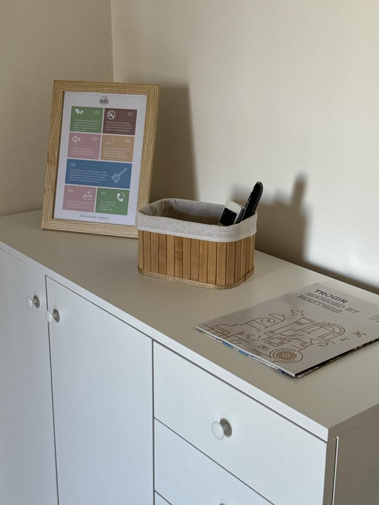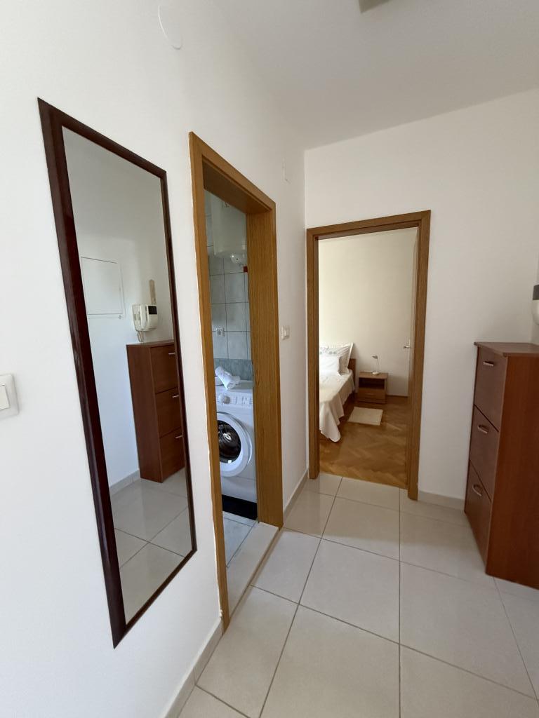 Nalazi se u mirnom i tihom dijelu UNESCO-vog grada Trogira, udaljen svega 900 metara od povijesne jezgre grada. U krugu od 50tak km nalazi se Dioklecijanova palača (Split 25 km ), Omiš, Cetina (rafting), Slapovi Krke, Šibenik, trajekti iz Trogira za izlete na otoke. Gostima je na raspolaganju besplatan parking. Apartman je klimatiziran. Sastoji se od kuhinje opremljene sa svim što je potrebno 'kao doma', kupaonica s tušem, toaletom i veš mašinom, spavaće sobe s velikim bračnim krevetom, dnevni boravak s TV-om i blagovaonom, balkon s pogledom na vrt i besplatan Wi-Fi. Apartman je predviđen za smještaj 2 osobe. U neposrednoj blizini (6 minuta pješice) nalaze se veliki supermarket Plodine i teretana. Do obližnjih plaža treba 5 minuta autom ili 15 do 20 minuta pješice. Split Airport (SPU) udaljen je 5 km, a autobusni kolodvor Trogir udaljen cca 900 m. Tražite li tiho i mirno okruženje, a istovremeno želite biti blizu svih sadržaja koje Trogir nudi, ovo je apartman za vas. Dobrodošli!