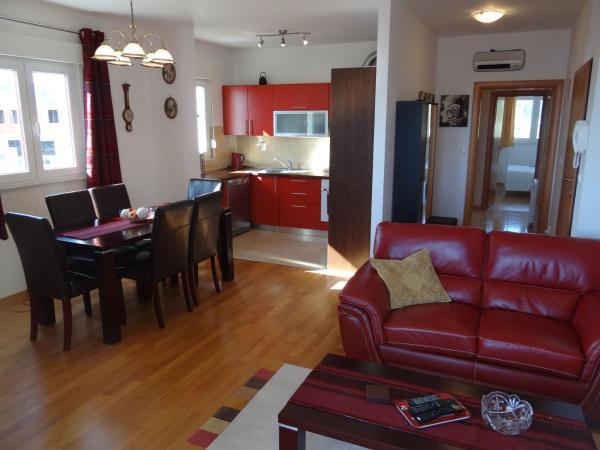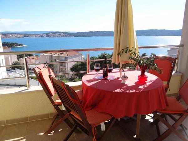 Apartman Marin nalazi se na otoku Čiovo svega 700m(10 min hoda) udaljen od povijesnog grada Trogira, koji je pod zaštitom UNESCO-a. Apartman sa terasom, koja ima prekrasan pogled na more i borovu šumu u mironom okruženju, je udaljen samo 10 min šetnje od plaže. Komfortni apartman sastoji se od dvi spavaće sobe sa bračnim krevetima, kupaonice, kompletno opremljene kuhinje, blagovaonice i dnevnog boravka. Apartman je klimatiziran i na raspolaganju su televizija sa internacijonalnim programima i besplatni WiFi.