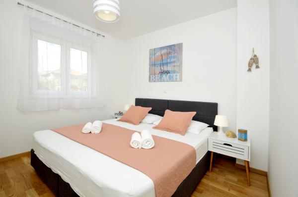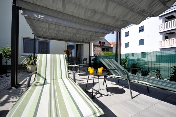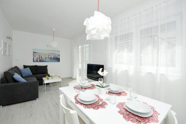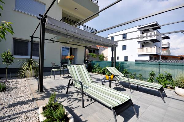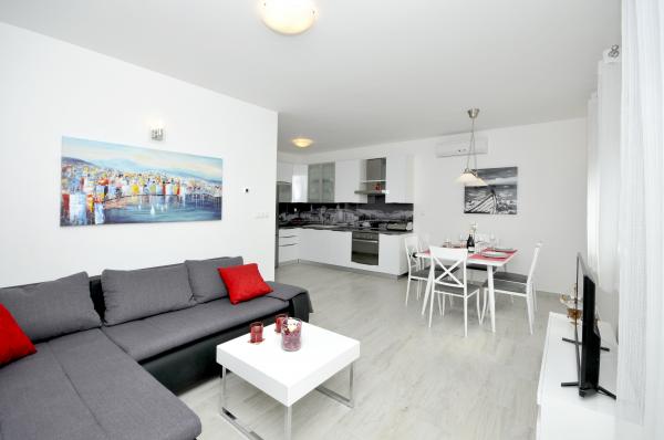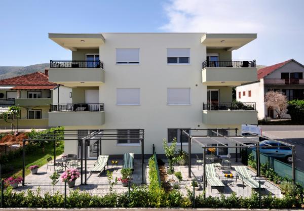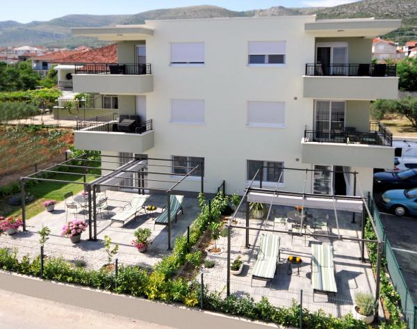 Apartmani Town Trogir smješteni su na kopnenom dijelu Trogira na odličnoj lokaciji samo 400 m od centra starog grada, te 900 m od nove gradske plaže. Do navede plaže se dolazi šetnicom uz more. Svi glavni sadržaji dostupni su pješice, šetnjom od 5 do 10 min. Apartmani Town Trogir su novi i nalaze se u manjoj stambenoj zgradi od 6 stanova. Apartmani imaju površinu od 50 do 60 m2. Apartmani se nalaze u prizemlju. Apartmani su su moderno uređeni i kompletno opremljeni. Apartmani imaju 2 spavaće sobe, dnevni boravak sa blagavaonicom, kompletno namješetnu kuhinju, kupaonicu, te velike terase sa vrtnim namjestajem u prizemlju. Ispred objekta je osiguran besplatan parking. Posteljina i ručnici su uključeni. WiFi je besplatan. Turistička pristojba je uključena u cijenu.