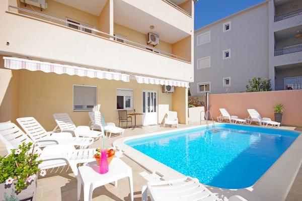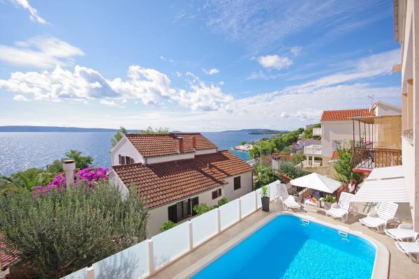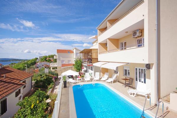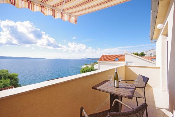 Apartmani se nalaze u mirnoj uvali sa južne strane otoka Čiova, smješteni drugi red do mora i svi sa pogledom na otvoreno more. Na maloj udaljenosti od objekta su restoran sa uređenom plažom kao i sportski tereni a sama uvala se nastavlja na gotovo netaknutu prirodu, prirodne plaže i borovu šumu. Sa druge strane, svi potrebni urbani sadržaji te noćni život mogu se naći u centru mjesta koji obiluje kafićima, restoranima te ima lijepo uređenu šetnicu. Posebna je prednost blizina Trogira koji je grad spomenik pun kulturno povijesnih znamenitosti.