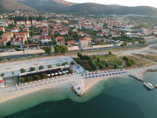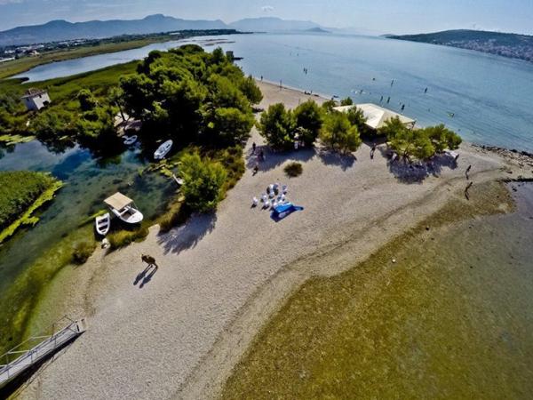 Breach and bridge apartment smješteni su svega 1 500 metara (20 minuta hoda) od Unesco grada Trogira. Apartmani se nalaze prvi red uz cestu te kompletno i suvremeno opremljeni, svaki od apartmana ima vlastitu terasu s prekrasnim pogledom na more, te iza kuče u vrtu sadrži terasu sa grilom. Objekt se nalazi svega 5 minuta hoda do pješčane i šljunkovite plaže okružene borovom šumom i prirodnim rezervatom; posebno pogodna za obitelji s djecom. Zbog svog položaja apartmani se nalaze na prekrasnom dijelu grada koji Vam omogućavaju gradsku gužvu, a ujedno i ugodan odmor daleko od svega, a opet blizu svega i na vrhunskoj poziciji za povezanost s ostalim dijelovima turističke ponude regije.