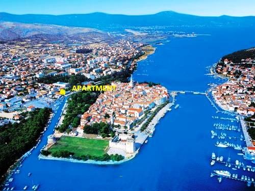 Apartman je veličine 80 m2 nalazi se na prvom katu zgrade koja je zaštićena zavodom za zaštitu spomenika UNESCO. Visoki stropovi te odgovarajući prozori i količina svjetla u stanu mu daju poseban dojam prozračnosti. 8 gostiju će se ovdje smjestiti vrlo komforno jer se u njemu nalaze čak 3 bračna kreveta, i četvrti sofa pomoćni ležaj za dvoje. Apartman je opremljen računalom te besplatanim internetom ( WiFi modem ), kablovskom televizijom,air-condition bez dodatnog plaćanja. Apartman je smješten u zgradi koja je zaštićena zavodom za zaštitu spomenika.Zgrada kao takva ima povijest iza sebe, jer je napravljena još 1886.godine od strane trogirskih imućnih zemljoposjednika Bilić. Ovo bi mogla biti prava lokacija za vas ukoliko tražite komforan smještaj u samom centru ali malo dalje od uvijek noću bučne stare jezgre.
