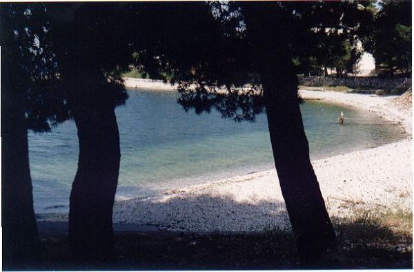 Apartmani Komar nalaze se na umjetnom poluotoku čiovu, samo 1, 6 Km od Trogira grada spomenika pod zaštitom UNESCO-a. U blizini je zračna luka(6 Km) i grad Split(30 Km). Sami apartmani nalaze se uz borovu šumu i blizu mora(200 m) gdje se nalazi šljunčana plaža sa borovom hladovinom i malim ugostiteljskim objektom s glazbom.