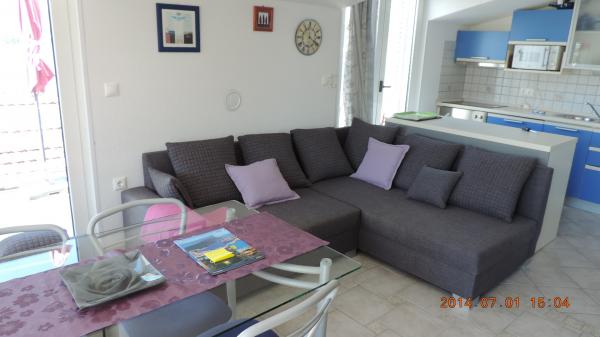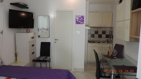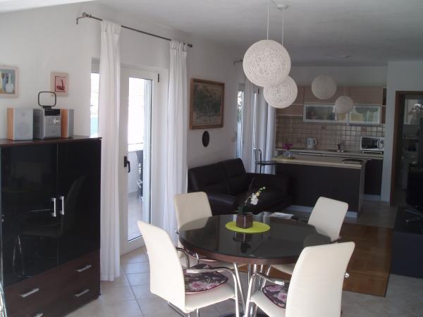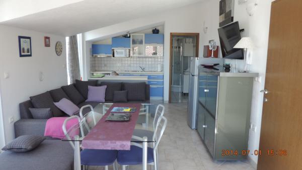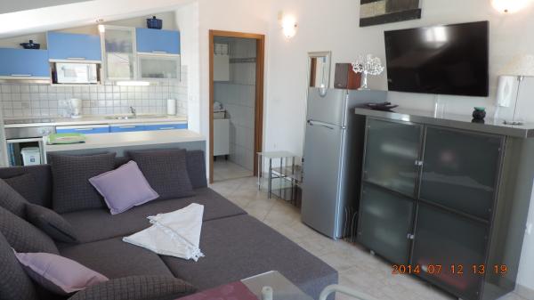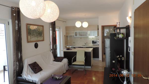 Turistička pristojba je uključena u cijenu.Originalni unutarnji raspored Apartmana, sa odvojenim prostorom za dnevne aktivnosti od dijela za odmor i spavanje, omogućuje ugodan i konforan boravak i odmor. Apartmani Penthouse imaju dvije spavaće sobe, kuhinju sa dnevnim boravkom, prostorom za objedovanje i prostrane terase sa pogledom na more. Apartmani su opremljeni svim potrebnim sadržajima, klima - Split sistem, Satelit-TV, Wi-Fi, perilica suđa i perilica rublja, Sef za novac i dragocjenosti, vrlo važan detalj prozori imaju mreže za komarce. Apartmani su opremljeni svim malim i velikim kućanskim aparatima potrebnim za pripremanje i čuvanje hrane. Naša Villa ima u ponudi dva luksuzna/ penthouse apartmana i jedan Studio apartman. - Apartman / penthaus / Karla (4 1), smj