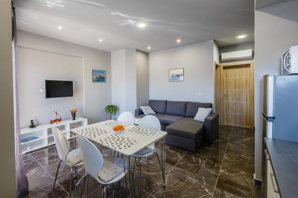 Obiteljska kuća u Trogiru, sa prekrasno uređenim apartmanima. Udaljeni su samo 5 minuta šetnje od povijesne jezgre grada. Gradska plaža udaljena svega nekoliko minuta šetnje od apartmana. Komforni, i potpuno opremljeni. Svaki apartman ima balkon/terasu gdje možete uživati u obrocima na otvorenom, ili se prepustiti sunčanju u privatnosti svog apartmana. Apartmani imaju ukusno uređeni interijer, potpuno su opremljeni, klimatizirani, sa bežičnim internetom i osiguranim parkirnim mjestom u dvorištu. Vrlo su pogodni jer zbog blizine centra grada omogućuju razgledanje Trogira bez korištenja automobila, što je dosta bitno obzirom na prometne gužve koje znaju biti tijekom ljetnih mjeseci. Zračna luka se nalazi na 3 km od apartmana, a ako želite ići u Split možete ići brodom iz Trogira i opet izbjeći gužve i u Trogiru i u Splitu.