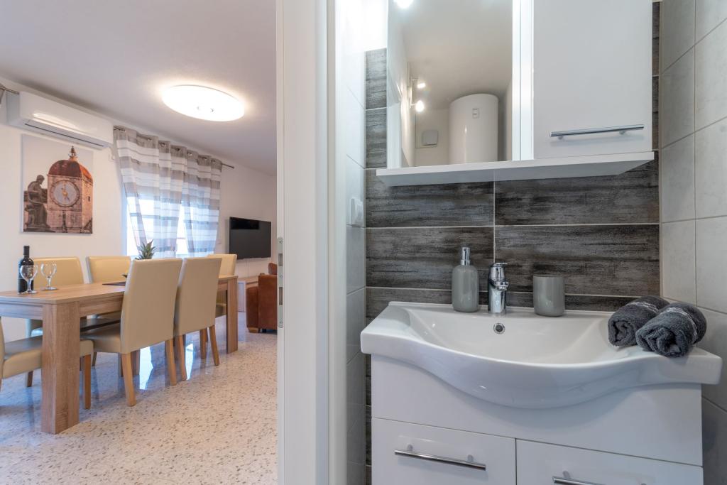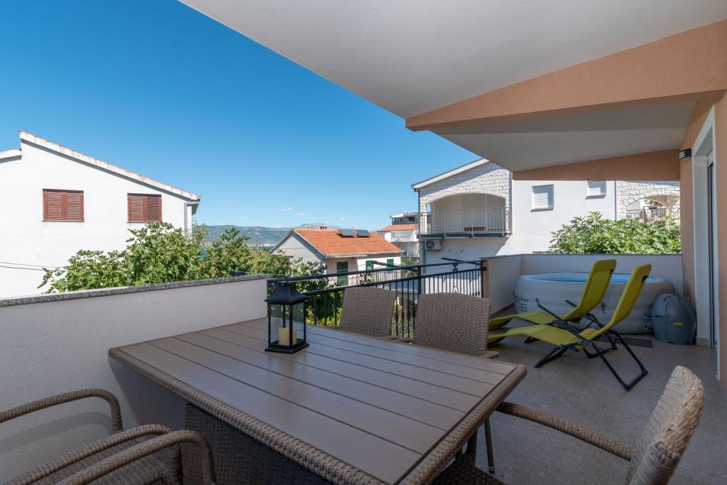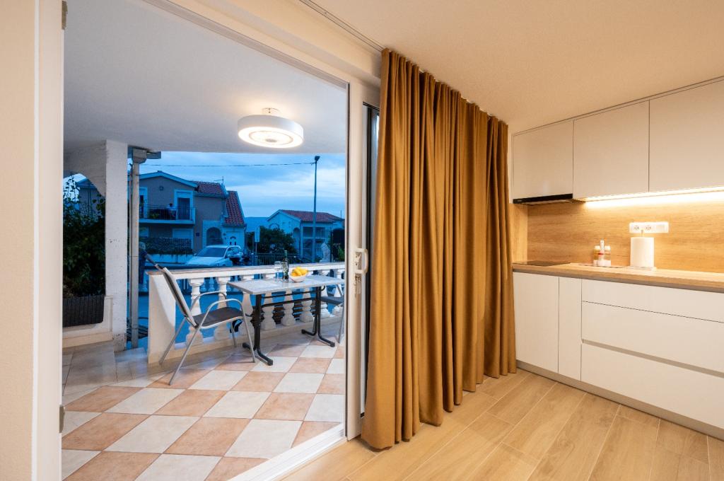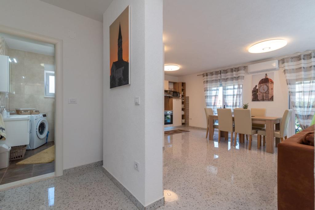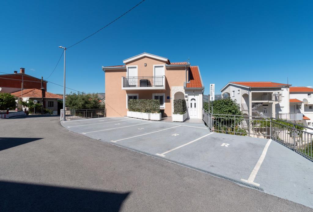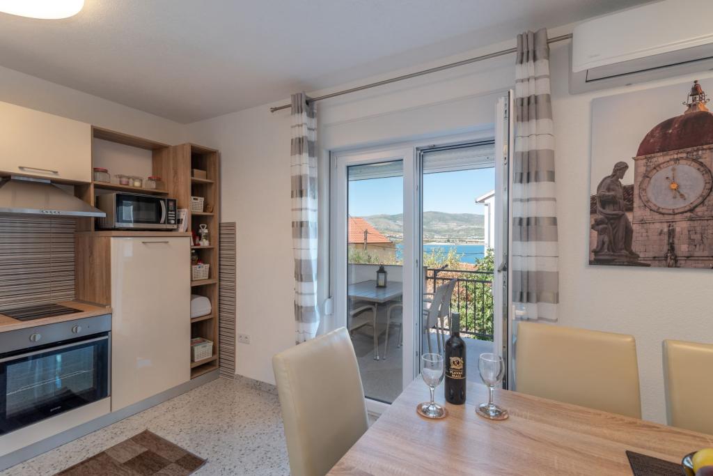Vrlo čist i potpuno opremljen apartman... Od pegle do fena. daske za peglanje za 2 televizora. klima uređaj, set posuđa. Hladnjak. mikrovalna pećnica, perilica posuđa. 2 različita aparata za kavu. Hladna voda za dobrodošlicu u frižideru, voće na stolu. Rakija s domaćinom. Savršen odmor. Vlasnici su bili jako ljubazni i uslužni. Odmor je ovdje bio savršen. Blizina mora, trgovine, do starog grada Trogira točno 3 km. Odlična lokacija. preporučam
