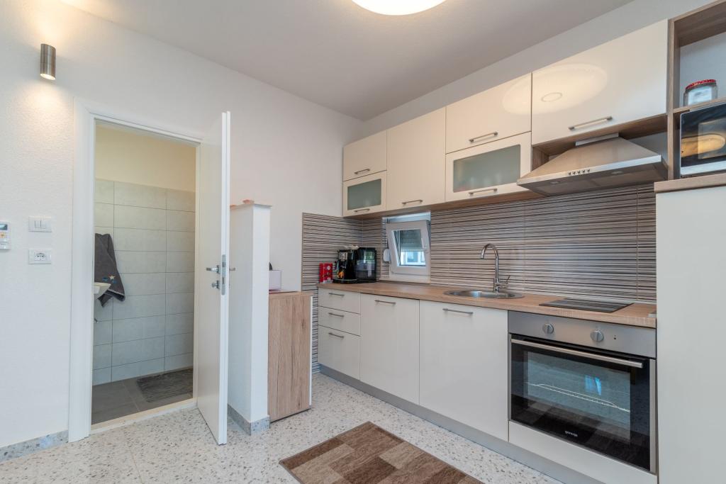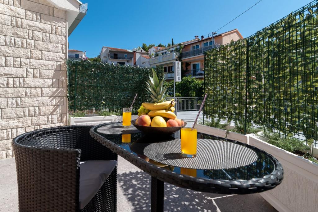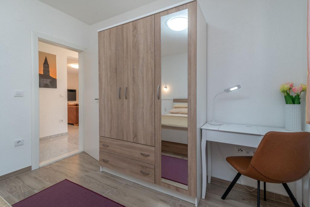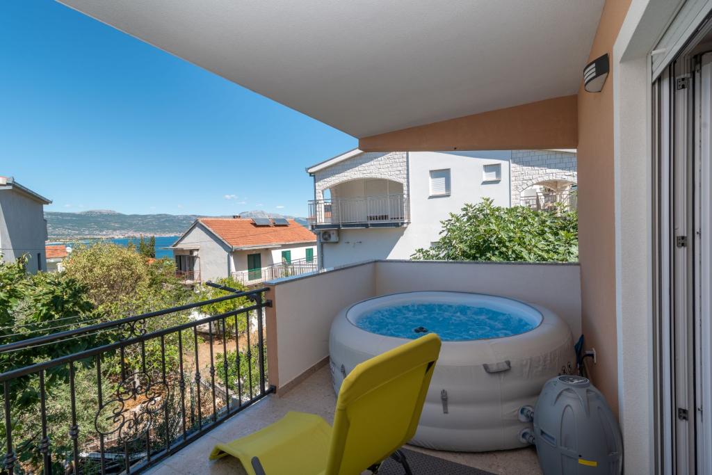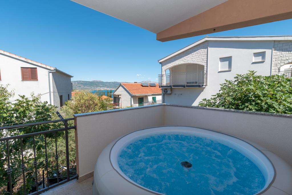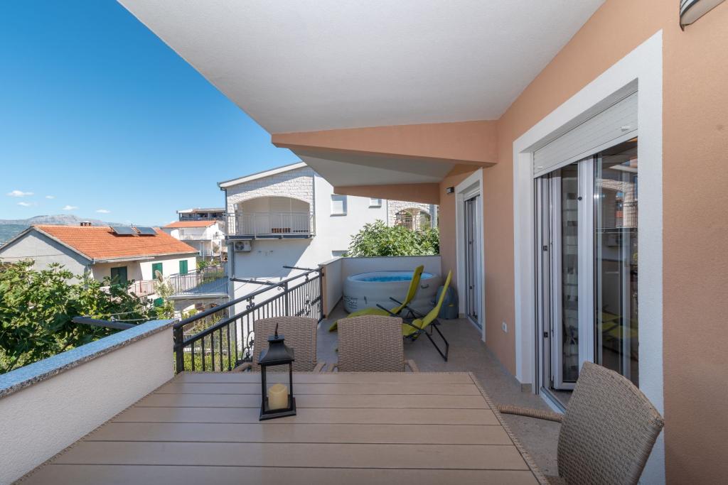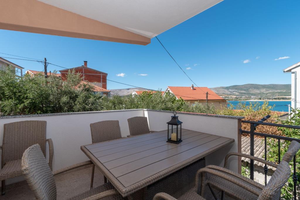Vrlo čist i potpuno opremljen apartman... Od pegle do fena. daske za peglanje za 2 televizora. klima uređaj, set posuđa. Hladnjak. mikrovalna pećnica, perilica posuđa. 2 različita aparata za kavu. Hladna voda za dobrodošlicu u frižideru, voće na stolu. Rakija s domaćinom. Savršen odmor. Vlasnici su bili jako ljubazni i uslužni. Odmor je ovdje bio savršen. Blizina mora, trgovine, do starog grada Trogira točno 3 km. Odlična lokacija. preporučam