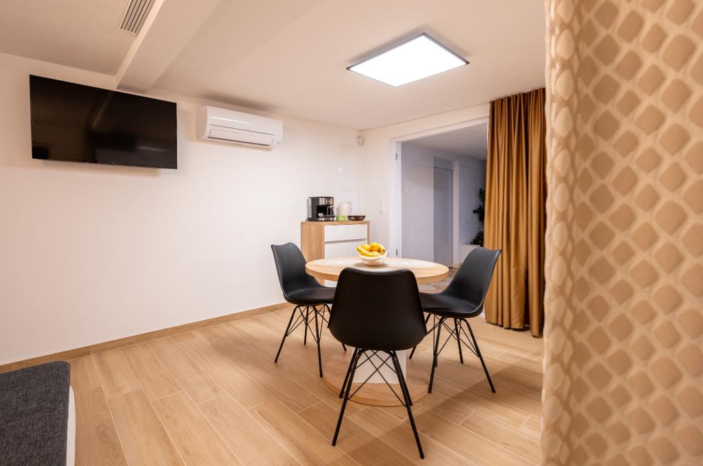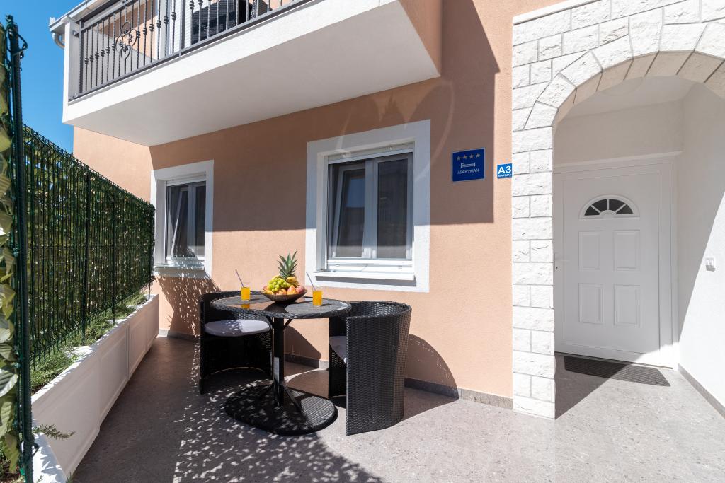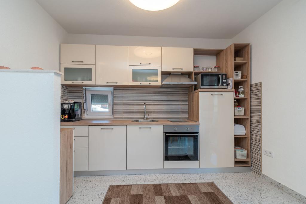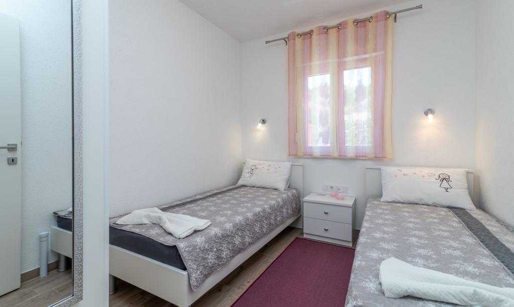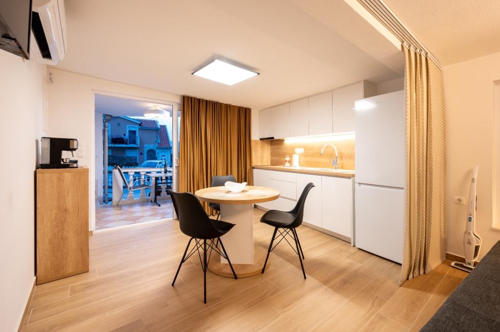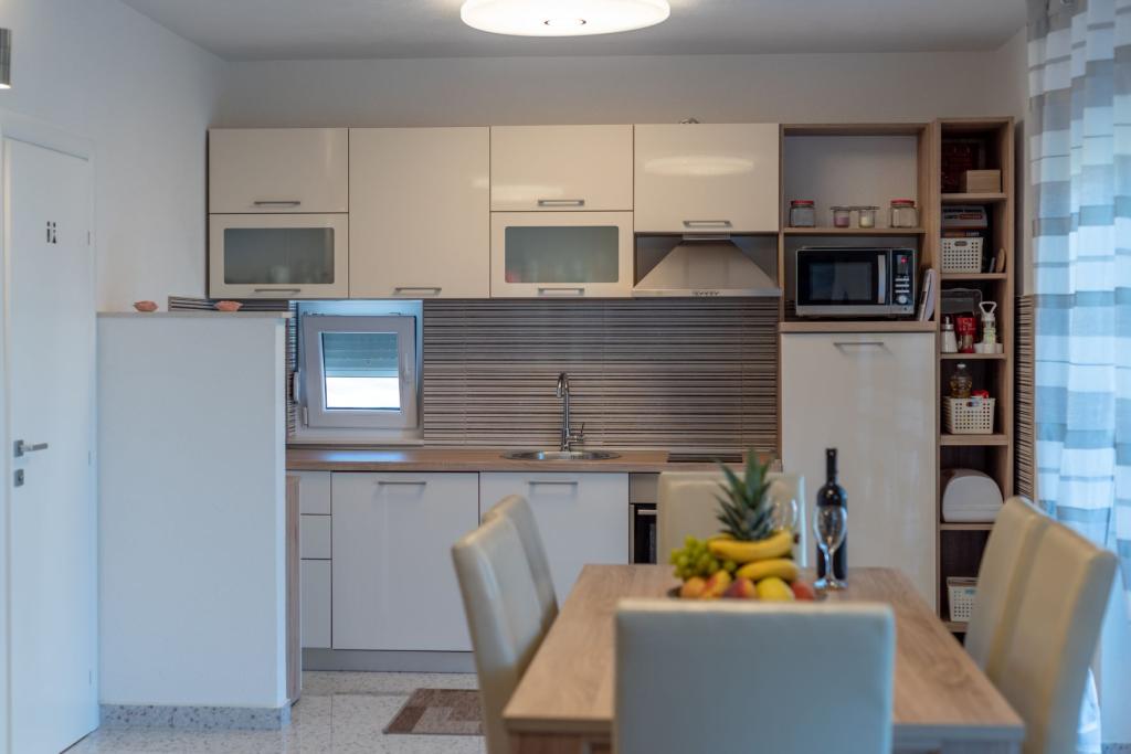 Vrlo čist i potpuno opremljen apartman... Od pegle do fena. daske za peglanje za 2 televizora. klima uređaj, set posuđa. Hladnjak. mikrovalna pećnica, perilica posuđa. 2 različita aparata za kavu. Hladna voda za dobrodošlicu u frižideru, voće na stolu. Rakija s domaćinom. Savršen odmor. Vlasnici su bili jako ljubazni i uslužni. Odmor je ovdje bio savršen. Blizina mora, trgovine, do starog grada Trogira točno 3 km. Odlična lokacija. preporučam