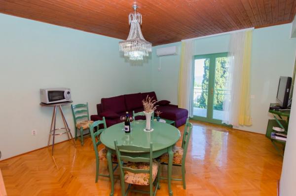 Ugodni i prostrani apartmani u uvali Mavarčica, Okrug Gornji, okruženi zelenilom sa prostranim balkonima na jugu te terasama sa zapadne strane i parking mjestom. Ulaz za apartmane i parking su odvojeni od ulaza vlasnika.