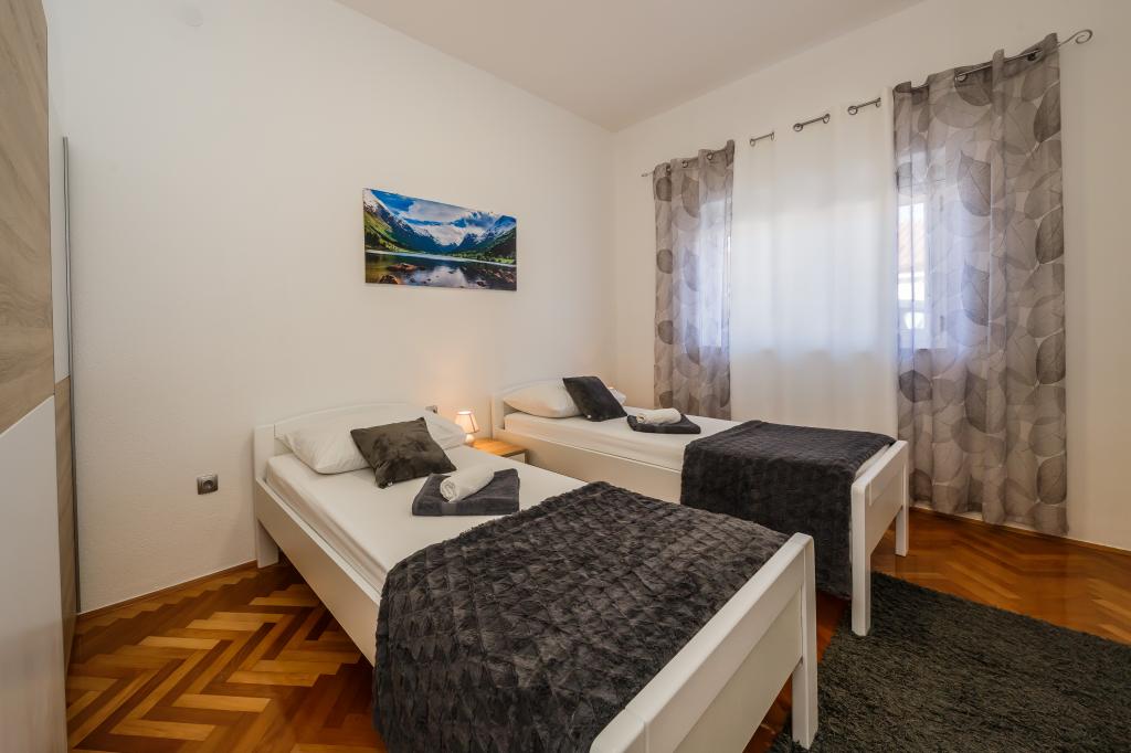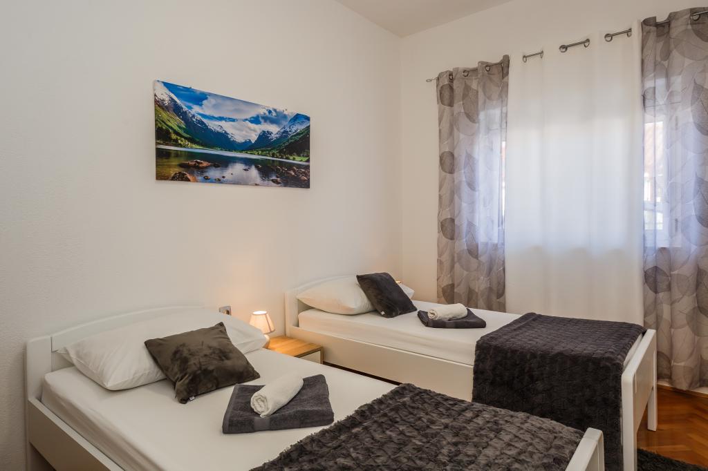 Apartmani Josip se nalaze se na otoku Čiovu 300 metara od centra Trogira koji je pod zaštitom UNESCO-a, 400 metara od ACI marine, 600 metara od plaže i 6 km od zračne luke. Veliki apartman A4 2 (65 kvadrata( je kompletno opremljen sa dvije spavaće sobe, kuhinjom, WC-om. U okviru apartmana ima terasa sa vrtom, grilom, dječjim igralištem (tobogan, klackalica, ljuljačka) i pogledom na Trogir. Studio apartman A2 (24 kvadrata) kompletni je opremljen sa terasom za sjedenje. Apartmani su klimatizirani i dostupan je besplatni WI-FI. Svaki od apartmana ima LCD sa satelisikm programima(. Postoji mogučnost iznajmljivanja oba apartmana za 8 osoba. Besplatno privatno parkiralište se nalazi u blizini objekta.