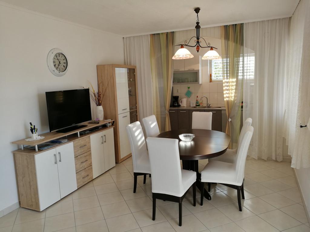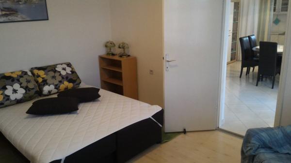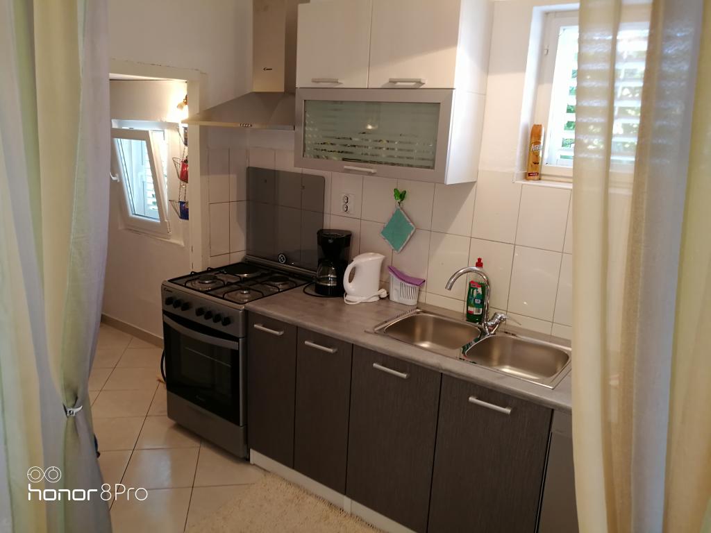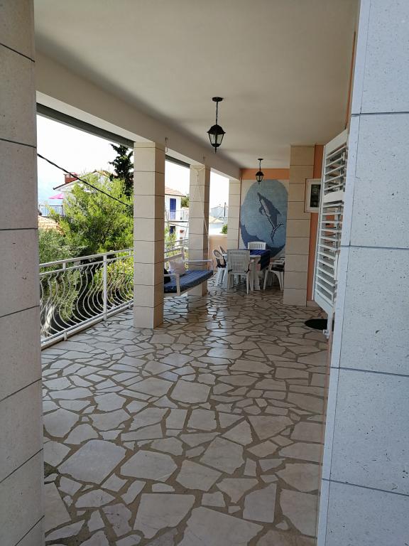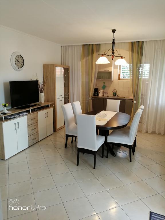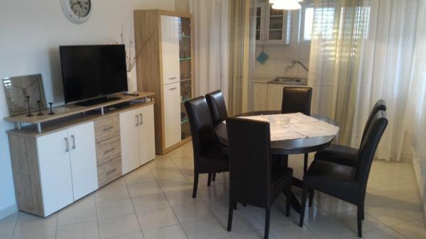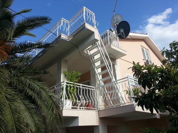 Apartmani se nalaze u privatnoj obiteljskoj kući, 30 metara od mora i plaže, na otoku Čiovo, 3 km udaljeno od centra grada Trogira. Raspolažemo s 2 velika komforna apartmana, svaki sa 3 spavaće sobe, kompletno opremljenom kuhinjom, kupatilom, trpezarijom, i velikom terasom s pogledom na more, te velikim vrtom i kominom za grill.