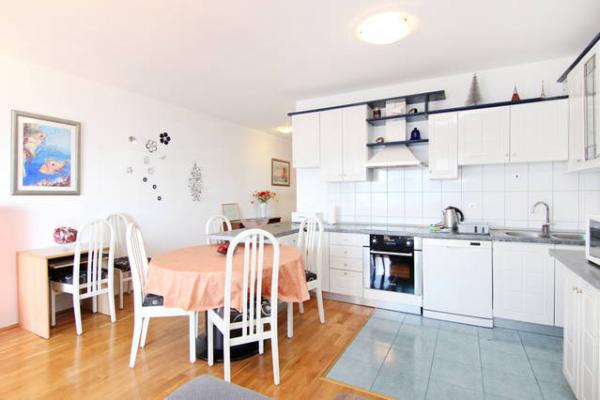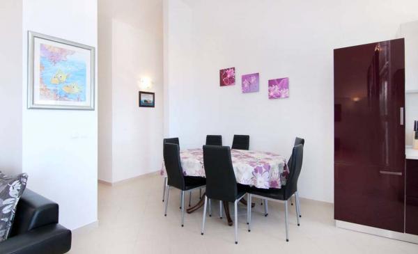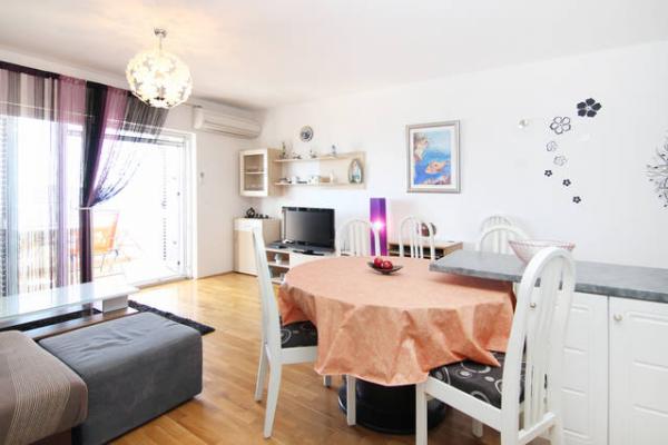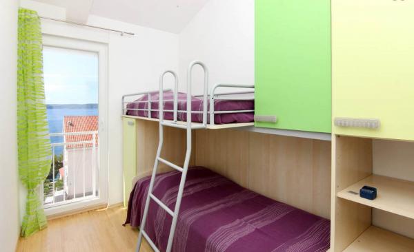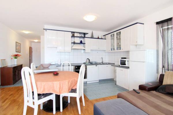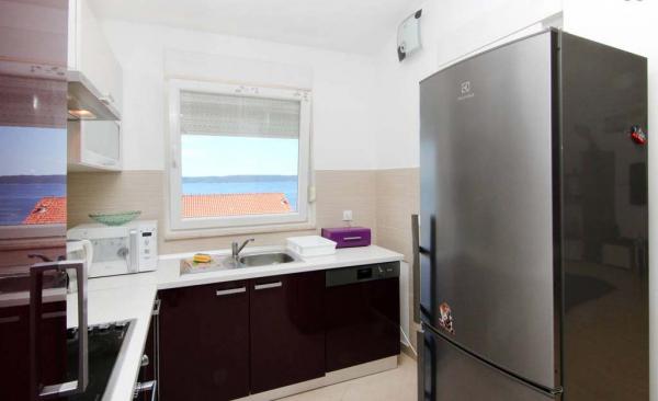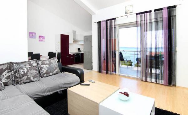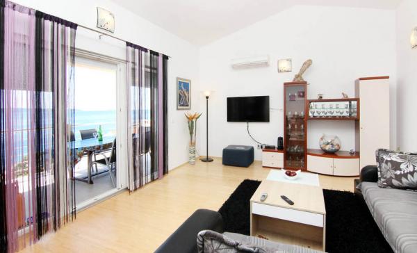 Kompletno i suvremeno opremljeni, te moderno novo namješteni apartmani nalaze se u Okrugu Gornjem, na južnoj strani otoka Čiova u mirnoj uvali Rastći s prekrasnim pogledom na otoke i more, te privatnim parking mjestima. Apartmani su udaljeni su 50 metara od mora(drugi red od mora) a od centra Trogira, spomenika kulture pod zaštitom UNESCO-a, samo 5 km. Grad nudi sadržaje za sve uzraste, od posjeta povijesnog centra, izleta brodom do obližnjih otoka, velikog izbora restorana, bogatog noćnog života i diskoteke. Udaljenost od prve samoposluge je 250 metara, a 350 metara od restorana. Pošta, bankomat, ljekarna, supermarket, pekara, kafići, restorani, te tržnica nalaze se oko 800 metara od apartmana. Trogir je smješten u srcu srednje Dalmacije, te je idealan za jednodnevne posjete 1700 godina starom Splitu (glavni grad Dalmacije), Šibeniku, Nacionalnom Parka Krka, Plitvičkim jezerima, šarmantnom gradiću na ušću rijeke Cetine - Omišu i Jadranskom biser Dubrovniku.