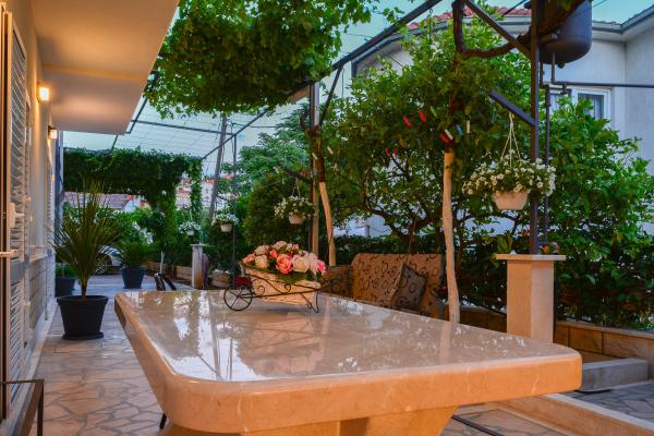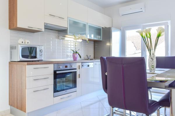 Luksuzno opremljeni apartmani Villa Tea smješteni su samo 50m od plaže u Okrugu gornjem i 1, 5 km od Trogira. Zračna luka je na 5 km udaljenosti. Za goste je osiguran besplatan privatni parking kao i bežični pristup internetu. Svi apatmani imaju balkone sa pogledom na more kao i kompletno opremljenu kuhinju sa perilicom posuđa, mikrovalnom pećnicom i kuhalom za vodu. Studio apartmani i svaka spavaća i dnevna soba u Apartmanima je opremljena TV prijemnikom sa satelitskim programina kao i klima uređajem. Kupaonice su opremljene sa tuševima, sušilom za kosu i toaletnim potrepštinama. Glačalo i stol za glačanje su dostupni na upit. Apartmani se sastoje od dvije spavaće sobe sa vlastitom kupaonicom i u svakoj sobi je dostupan pomoćni ležaj kao i u dnevnoj sobi za dvije osobe. U blizini objekta se nalaze razni sportski sadržaji kao iznajmljivanje vodenih skutera, paragliding a također i mogućnost brodskih izleta. Sama plaža je prilagođena djeci sa mini Aqua parkom