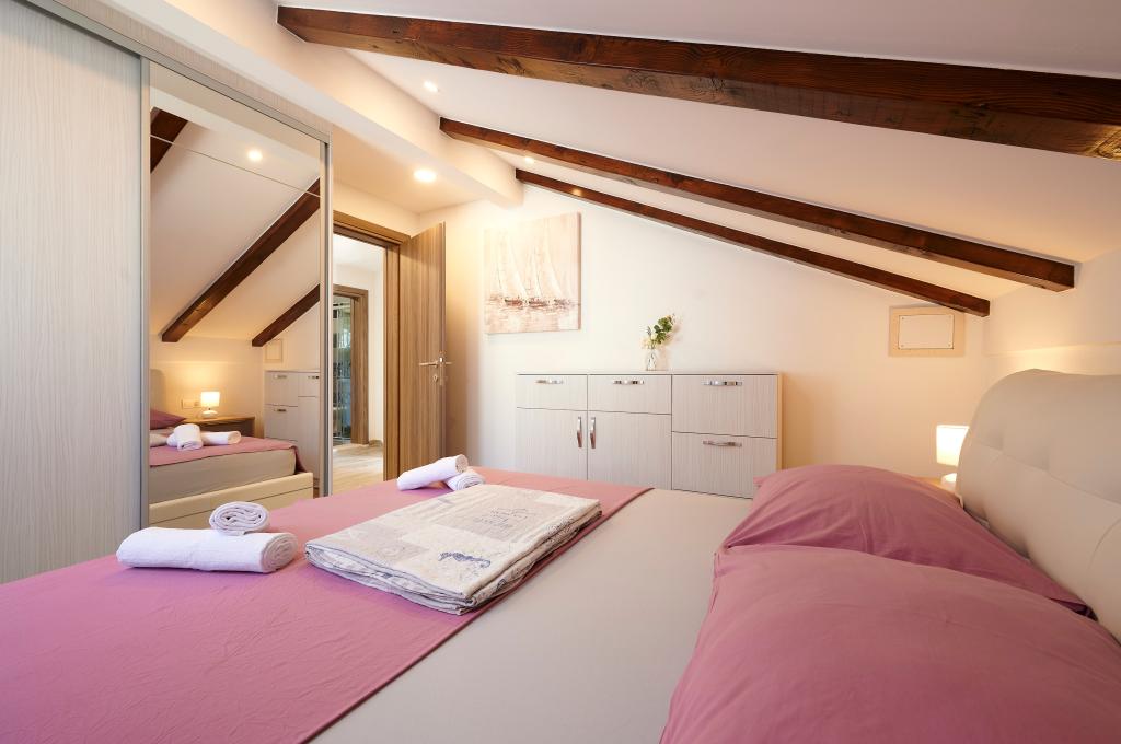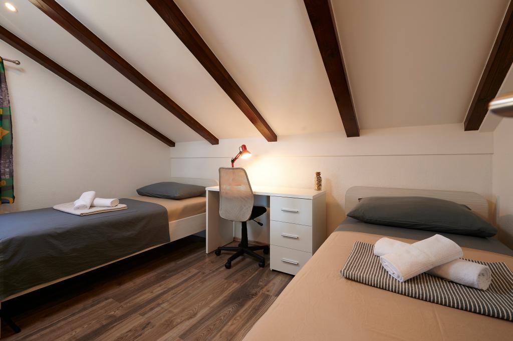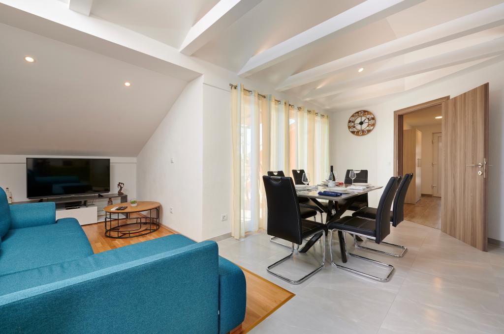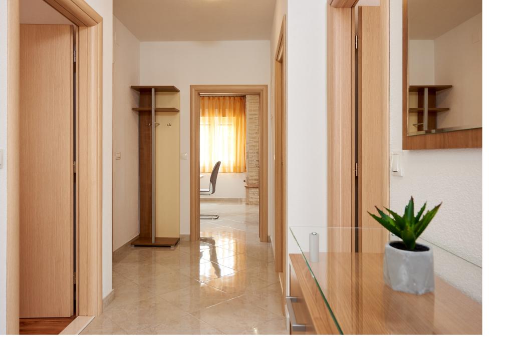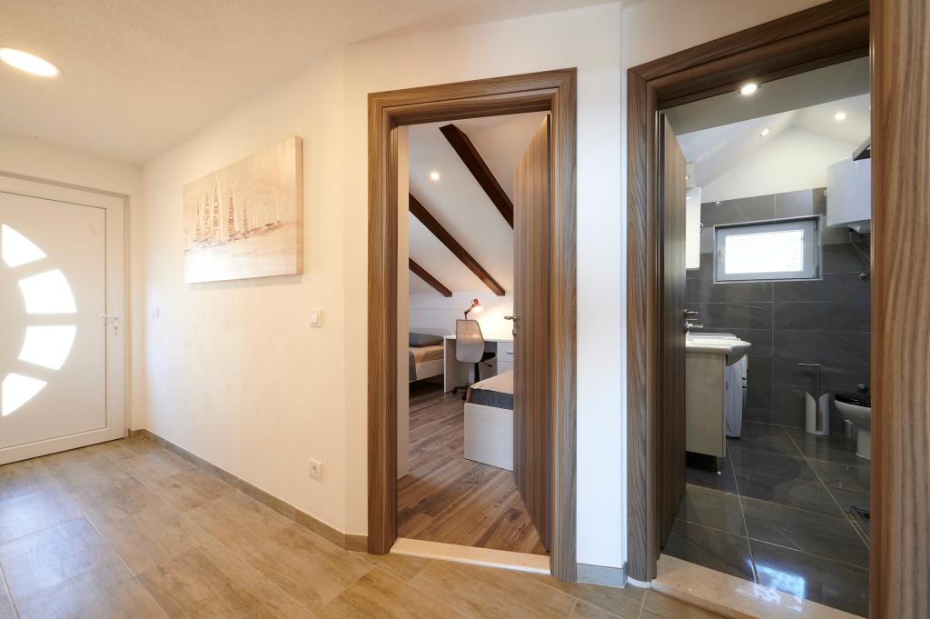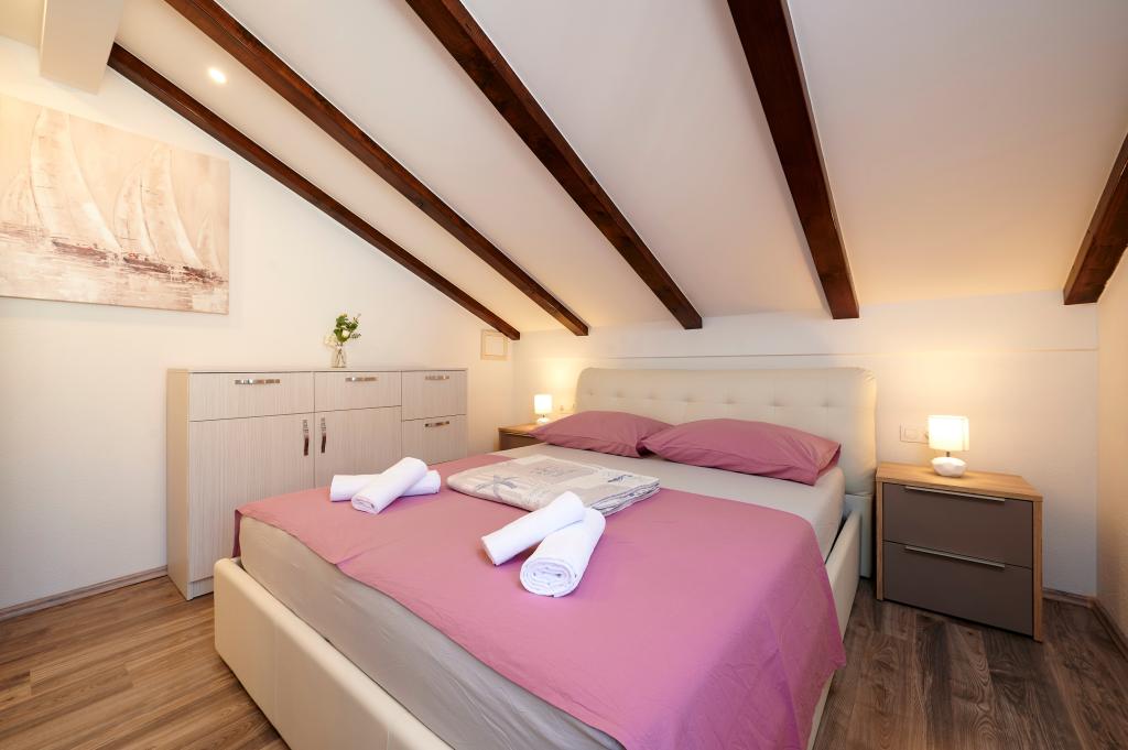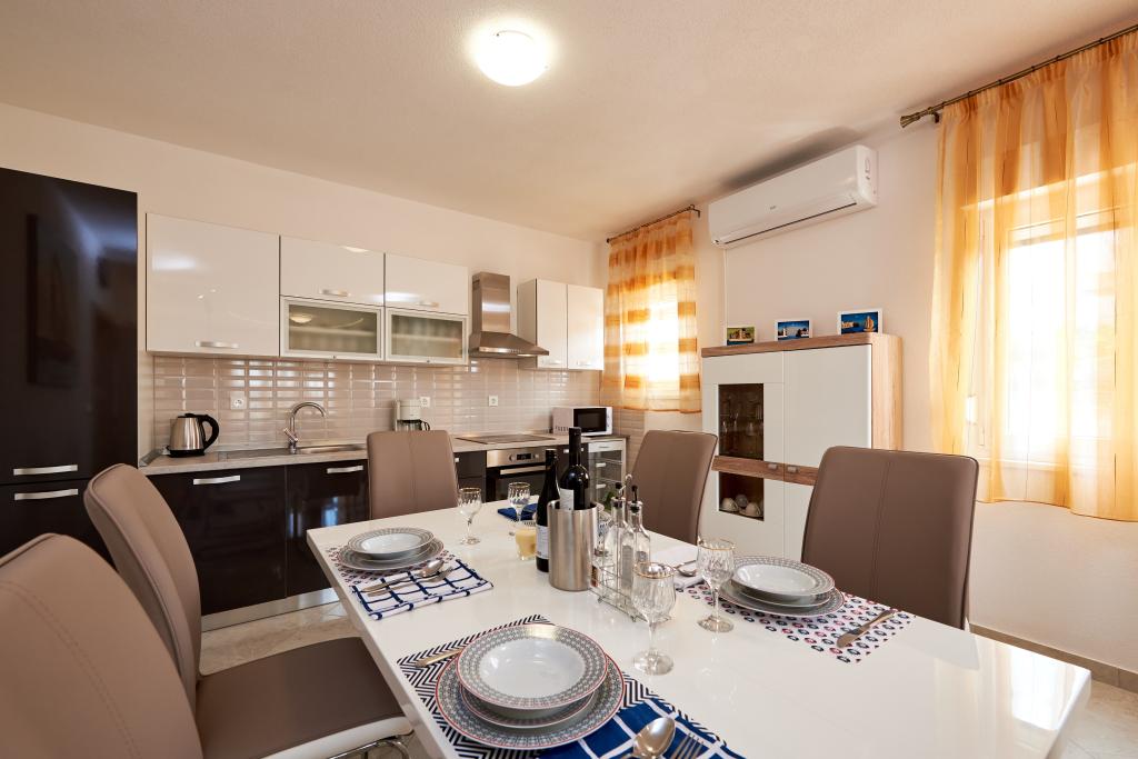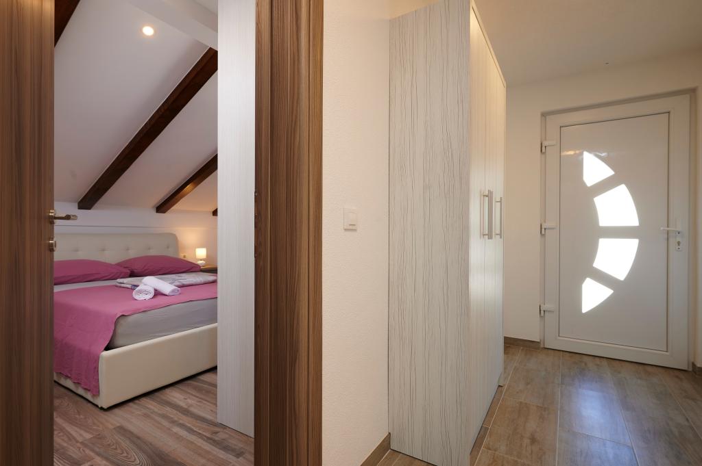 Apartmani Magdalena su komforni i odlično opremljeni. Smješteni su na otoku Čiovu samo 1,3 km od centra starog grada Trogira. Imaju prekrasan pogled na more i okolicu. Apartmani se nalaze u mirnoj gradskoj četvrti samo 250 m od najbliže plaže. Restorani, supermarket, bankomat, autobusna stanica i brodska linija koja vozi prema centru su u krugu od 400 m od apartmana. Do apartmana vodi cesta koja ide uz brdo. Oprema sadrži klima uređaj, besplatan parking, WiFi, potpuno opremljenu kuhinju, kabelsku Tv, perilicu rublja, perilicu posuđa...Apartmani imaju 75 i 85 kvadratnih metara plus vanjske terase na kojima su udobne fotelje i viseće ljuljačke u obliku jajeta. Apartman 1 nalazi se na prvom katu i ima tri spavaće sobe a apartman 2 je na drugom katu i ima dvije spavaće sobe i dva wc-a. Sve je lijepo uređeno, čisto i uredno. Apartmani su udaljeni 5 min hoda do plaže i 15 min do centra Trogira. Na obližnjoj plaži polazište je brodske linije koja vozi do centra grada, vožnja traje 10 min.