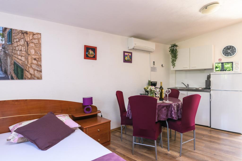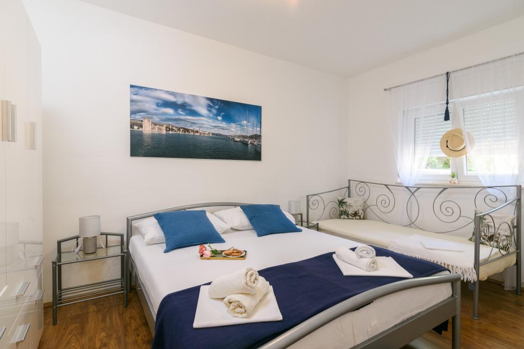 Nalazimo se u mirnom dijelu Trogira, udaljeni od centra nekih 400m, kao i od najbliže trgovine, ljekarne, ribarnice te zelene tržnice. Naš objekt se sastoji od dvije smještajne jedinice, koje su moderno opremljene, klimatizirane, te imaju besplatan parking za vaš automobil, kao i wi-fi pristup internetu.