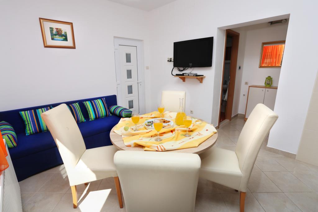 Apartmani Marin nalaze se u obiteljskoj kući pored kampa Rožac na otoku Čiovo, udaljeni 50m od prekrasnih plaža. Svaki apartman ima poseban ulaz, moderno su opremljeni, klimatizirani. Apartmani se nalaze na površini 2000m2 okruženi zelenim vrtovima, maslinicima i parkingom 200m2. Obiteljska kuća je udaljena 1 km od centra grada Trogira koji je poznat po svojim povijesnim ljepotama. Provedite svoj godišnji odmor u našim smještajnim jedinicama i biti će te ugodno iznenađeni.