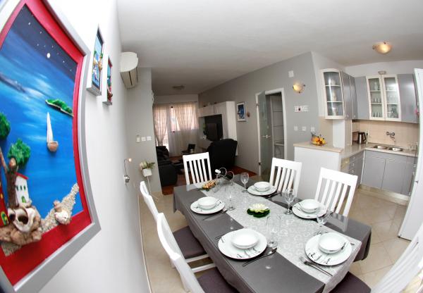 Apartman Nikola nalazi se u mirnom mjestu Mastrinka na otoku Ciovu. Apartman je potpuno opremljen te moderno i luksuzno novo namješteni te Vam je vlasnik na usluzi 24 sata na dan. Apartman je smješten 50 metara od mora i kafića te 200 metara od restorana, i ostalih dodatnih morskih sadržaja, Idealno za obiteljski odmor. Apartman se sastoji od jednokrevetne, dvokrevetne i trokrevetne spavaće sobe, odvojenog dnevnog dijela te 2 novouređene kupaonice. Ima 2 balkona , a apartman ima i prekrasan pogled na more. U cijenu je uračunata boravišna taksa, wi fi, klimatizacija te parking za 2 automobila.