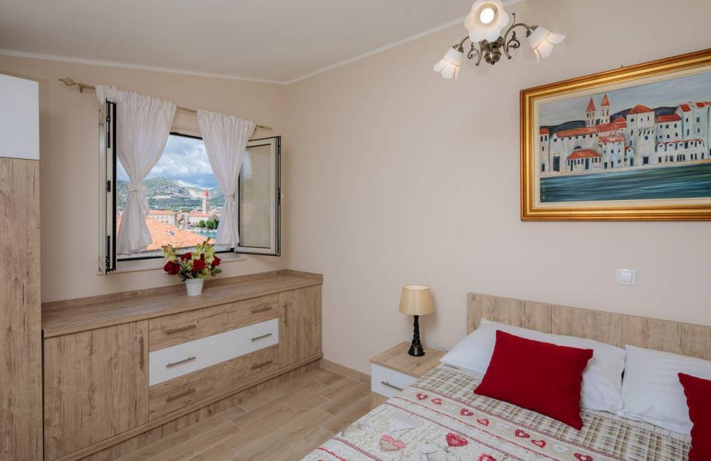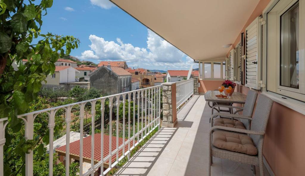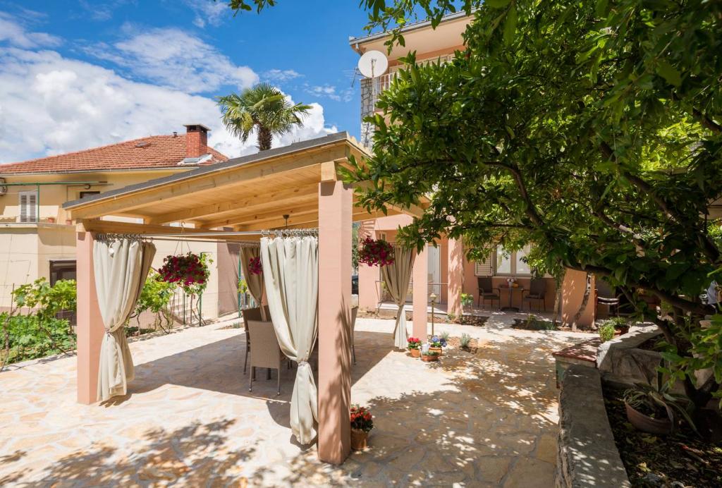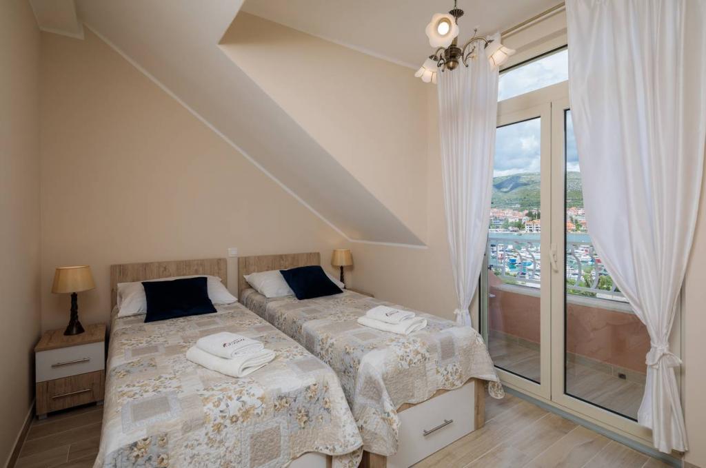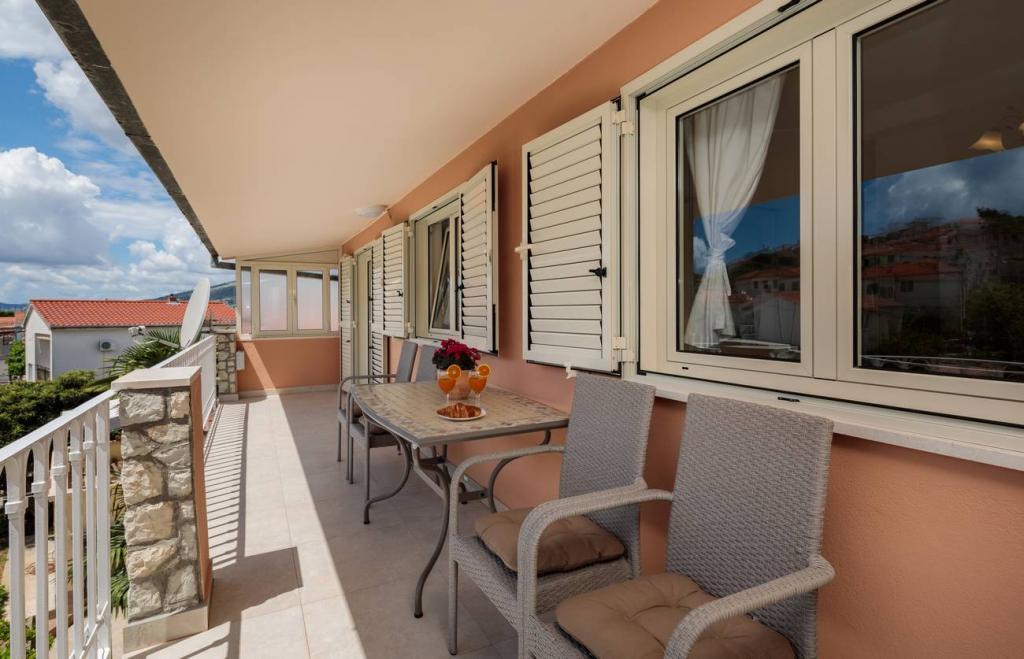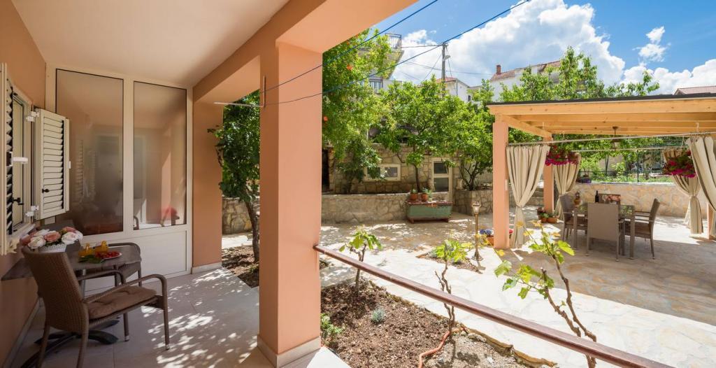 Apartmani Oaza smješteni su na sjevernoj strani poluotoka Čiova koji je povezan s 3 mosta s povijesnom jezgrom Trogira i kopnom. Naša kuća udaljena je samo 5 minuta hoda od srca Trogira. Dobar položaj apartmana omogućava brz i lak dolazak do centra grada kao i do plaža koje se protežu dužinom cijelog poluotoka. U neposrednoj blizini naših apartmana nalaze se trgovine, pekara, pošta, ljekarna, restorani koji nude dalmatinske specijalitete, kafići i autobusni kolodvor. Apartman 2+2 ( za max. 4 osobe ) Nalazi se na drugom katu. U apartmanu se nalazi potpuno opremljena kuhinja povezana s dnevnim boravkom, kupaonica s tuš kadom, te dvije dvokrevetne spavaće sobe – jedna sa bračnim krevetom, a druga s dva odvojena kreveta. Apartman ima 2 balkona, južni s pogledom na zelenu površinu poluotoka Čiovo i vrt te sjeverni s pogledom na more, Trogir i planinu Kozjak. Studio 3 ( za max. 3 osobe ) Nalazi se u prizemlju naše obiteljske kuće. U apartmanu se nalazi potpuno opremljena kuhinja, kupaoni