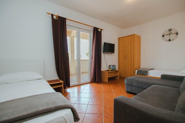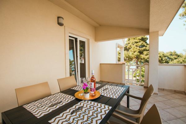 Ovaj apartman ima puno prednosti: -plaza s puno hlada (i blizina iste) -ogroman natkriveni balkon -blizina trgovine...