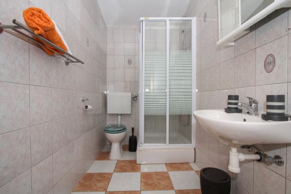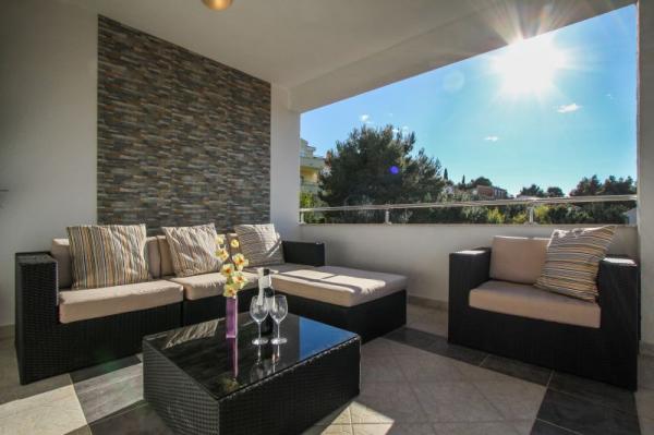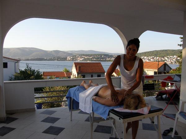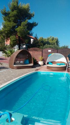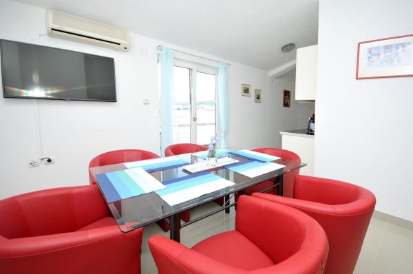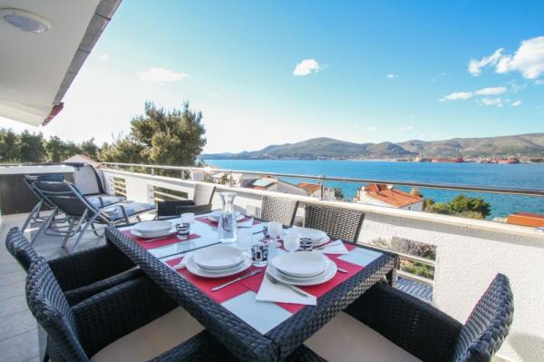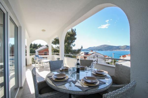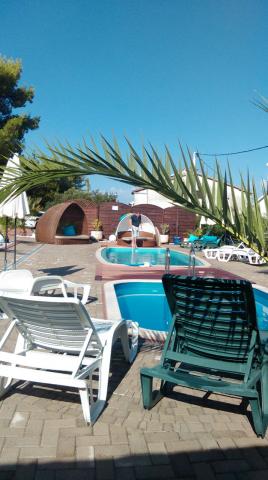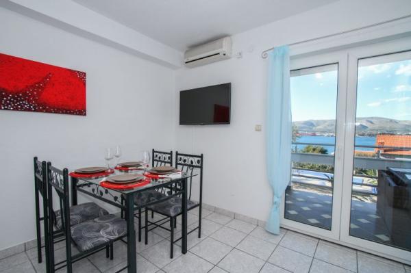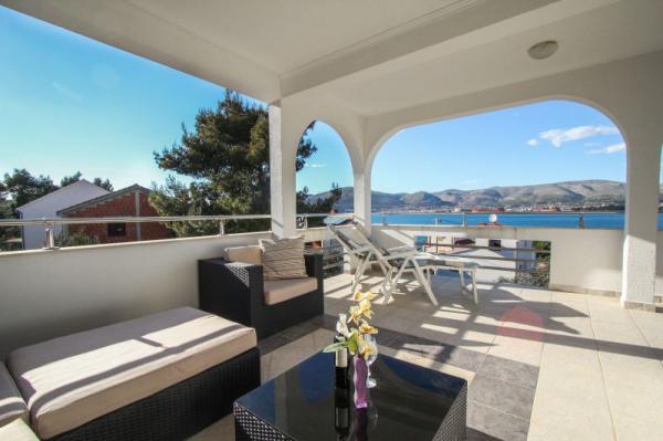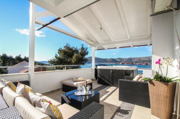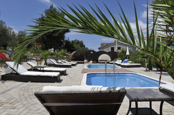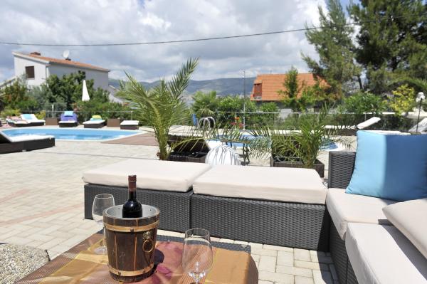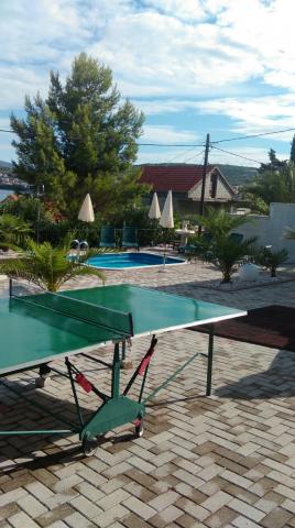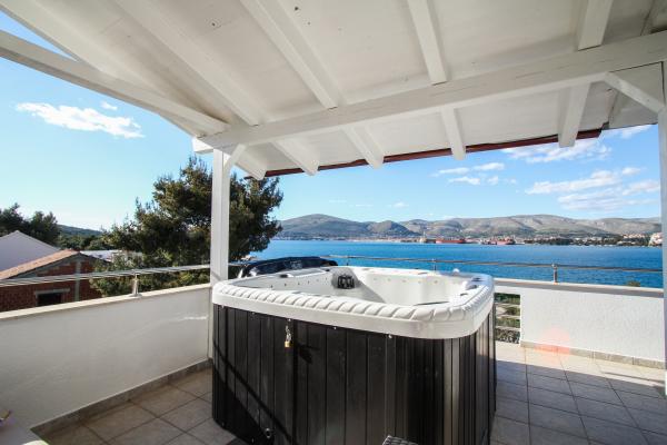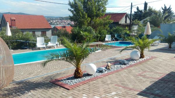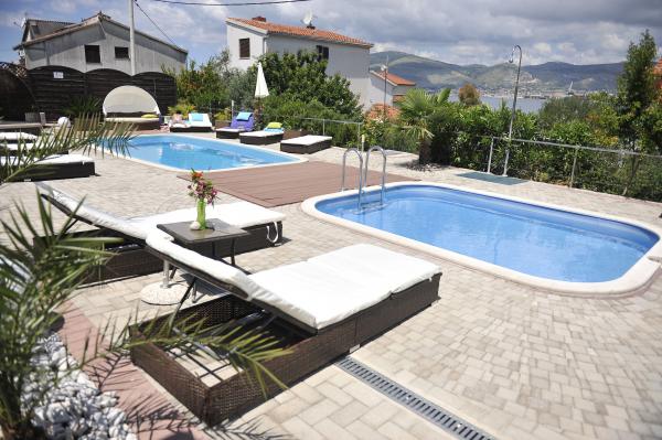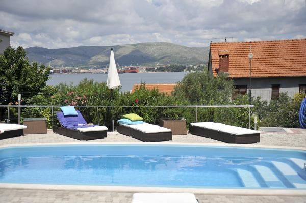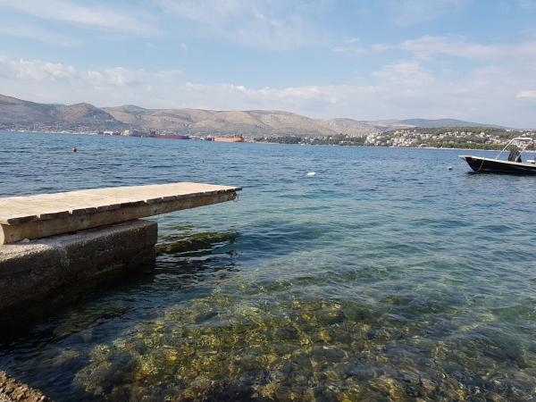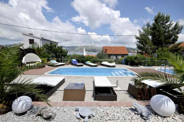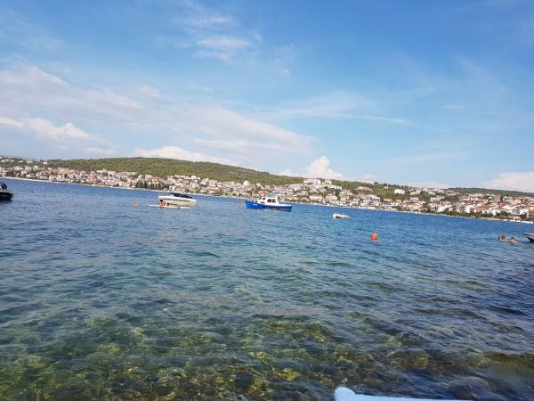Turistička pristojba je uključena u cijenu.Prekrasno, čisto more je udaljeno svega 5 minuta šetnje od kuće. Ako želite možete se kupati i u naša dva bazena. Ležaljke za bazen su besplatno za sve naše goste. Na terasi apartmana br 8 se nalazi masažna kada, samo za goste ovog apartmana. Svega 30minuta šetnje uz more dolazite do centra mjesta Okrug Gornji, gdje se nalazi prekrasna pješčana plaža sa brojnim kafićima i restoranima. U centru mjesta vam se nude brojne sportske aktivnosti: - kulturne večeri na plaži - razne vrste sportova, - izleti brodom do okolnih mjesta - škola ronjenja - škola tenisa - Trogir možete posjetiti malim putničkim brodom po pristupačnoj cijeni