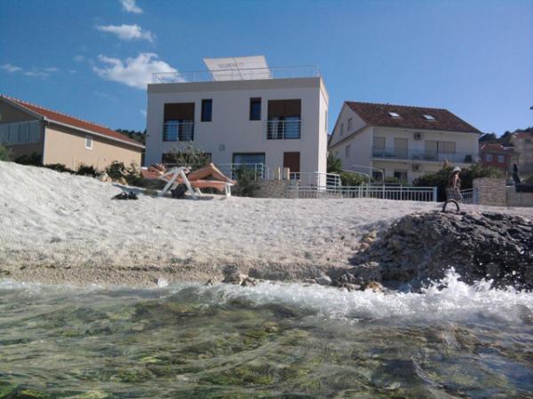 Kuća se nalazi u Mastrinci u prekrasnoj uvali na otoku Čiovu. Kuća je udaljena 2km od Trogira i 5km od aerodroma. Trogir je grad pod zaštitom UNESCO-a sa svojim prekrasnim ljepotama pruža vam prekrasan osjećaj i umjetnosti u svojoj staroj jezgri. Uz sve to imate raznoliku GASTRO ponudu kao i noćni život koji jamči zagarantiranu zabavu. Bogata ponuda noćnog života, plesnih zabava na otvorenim ljetnim terasama, live music za sve generacije, disco clubovi, party, festivali, koncerti, klapsko pjevanje. U kući su kompletno opremljena i klimatizirana 2 apartmana, uz SAT TV. Svaki od apartmana ima svoj poseban balkon s prekrasnim pogledom na more i plažu koja je udaljena samo 30 m od kuće. Parking je odmah ispred kuće za goste koji dolaze autom. Okruženje je mirno i tiho dok odmah nekoliko minuta od kuće imate mogućnost provoda i zabave. Za goste koji dolaze avionom, moguće je dogovoriti transfer na relaciji aerodrom – apartman i obrnuto besplatno.