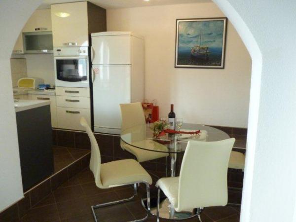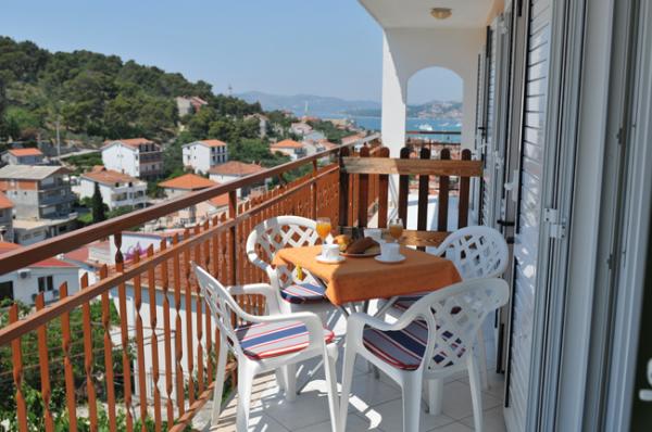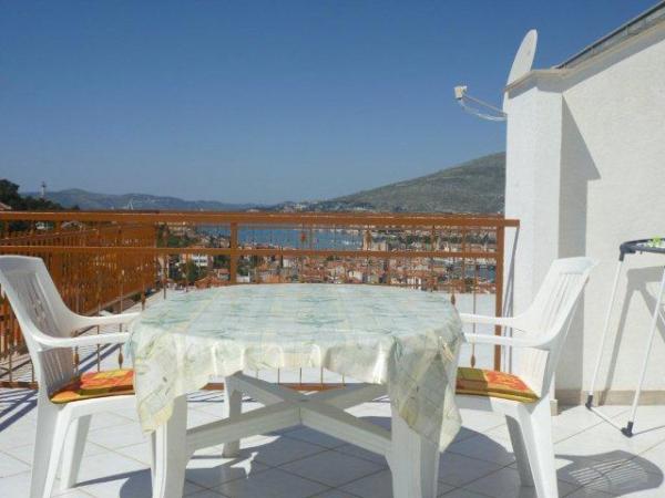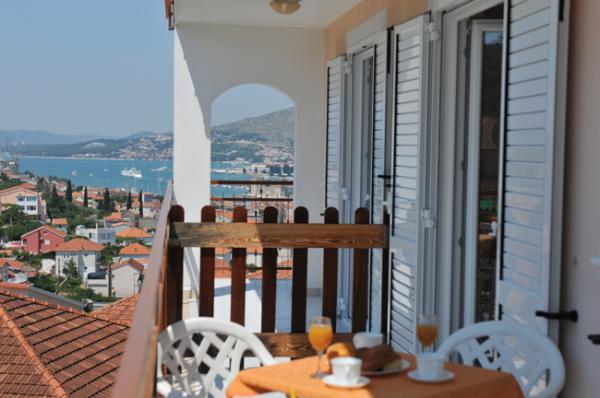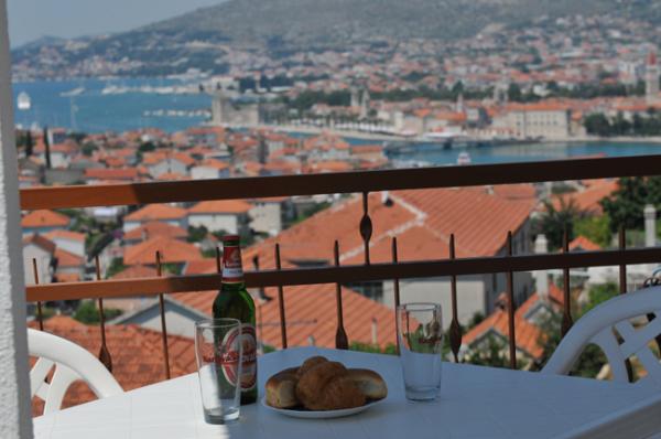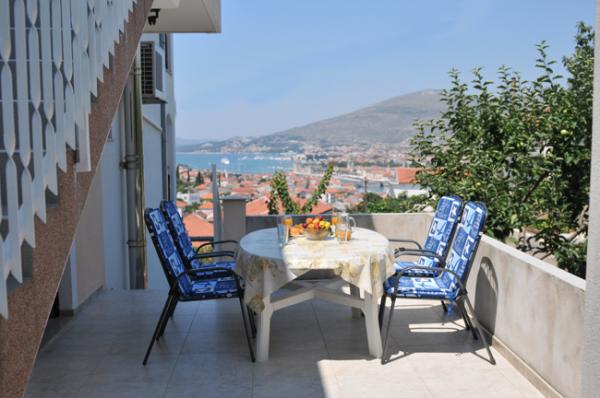 Bili smo ovdje u rujnu. Nemam riječi kojima bi mogao opisati prekrasan pogled sa balkona: stari grad Trogir, planine, more, jahte. I danju i noću. Posebno zadovoljstvo nam je bilo ručati na balkonu. Ovo je relativno mirna lokacija. Nama se svidjelo. Da budem iskren, tijekom dana se spuštaju avioni i naprave malo buke, ali je bilo i to zanimljivo. Nije daleko - krasna pekara. Tržnica i ribarnica su u Trogiru - razlog za šetnju kroz stari grad (1.5 km u jednom smjeru). Apartman je dobro opremljen. Nemamo prigovora za to. Domaćica - Miranda - vrlo ugodna, ljubazna i vesela žena. Ova vila se nalazi na vrhu brda na strmoj padini. Uske ulice nemaju pješačke prijelaze, morate je podijeliti s automobilima i skuterima. To vas može i učiniti nervoznim. Ako nemate iskustva za vožnju u takvim uvjetima - ostavite automobil kod kuće. Nema dobre plaže u okolici 2km! Ovo je mjesto za ljubitelje planinarenja. Prigovor na apartman: kreveti nisu ugodni, škripe, opremljen - sintetično i šuštavo. Balkonska vrata ne rade ispravno, ne mogu se zatvoriti i voda ulazi kad pada kiša. U kupatilu - užasan miris svake noći. Nema ogledala, osim odraza u balkonska vrata. Nadam se da su to privremeni problemi.