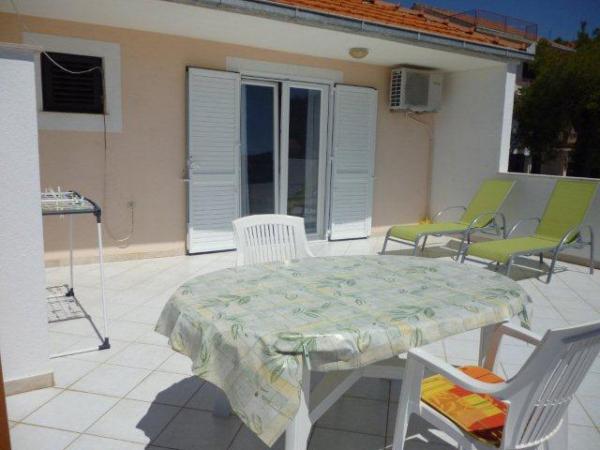 You will find our Apartments in the center of Trogir (part of town on Ciovo Island) at about 900m away of old part of town.Holiday apartments are situated in a private villa close to the historical Trogir center on the hill wit a magnificent view on Trogir riva and the sea, far away from the main road which asures peace and quiet and waking up with birds singing from the gardens close by. Old part of Trogir, the old core on small islet, has been under protection of UNESCO since 1997. The town of Trogir has plenty to offer tourists in the region. The close vicinity of all modes of transportation allows you to reach us with ease, making the property a great starting destination for all your daily tours, including trips to amazing places in Dalmatia or numerous islands and National Parks. In these quiet,private apartments youll get a good nights sleep and feel right at home. Towels and linens are provided and are changed once per week or by prior arrangement. Washing machine and clothing irons are available upon request. All guests are welcome to use the outside grill. Car parking is available on the property to all guests. Pets are welcome, however prior notice is required. We wish you an enjoyable and most memorable stay with us! Family Smoljic
