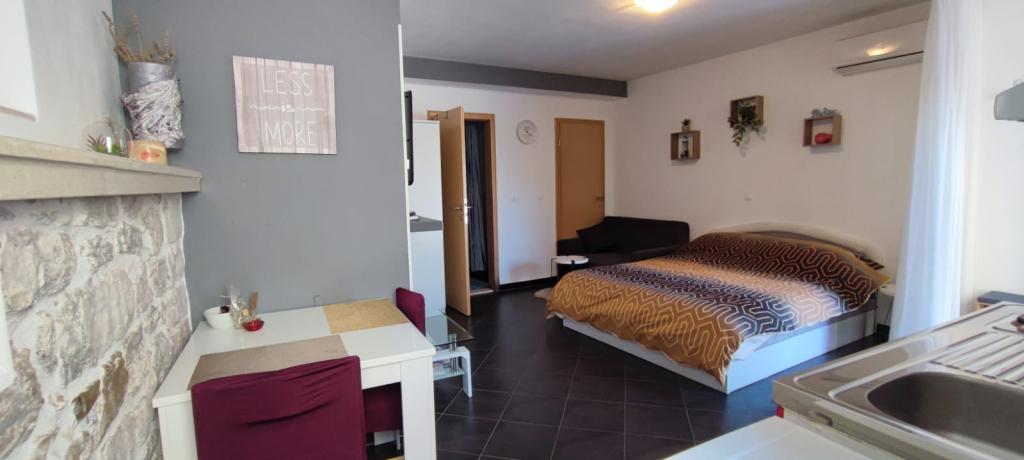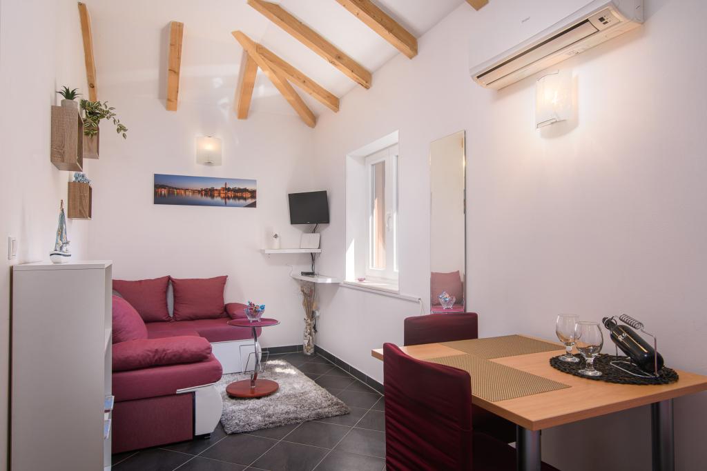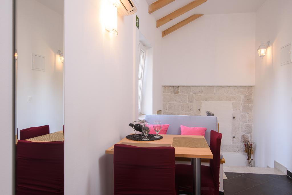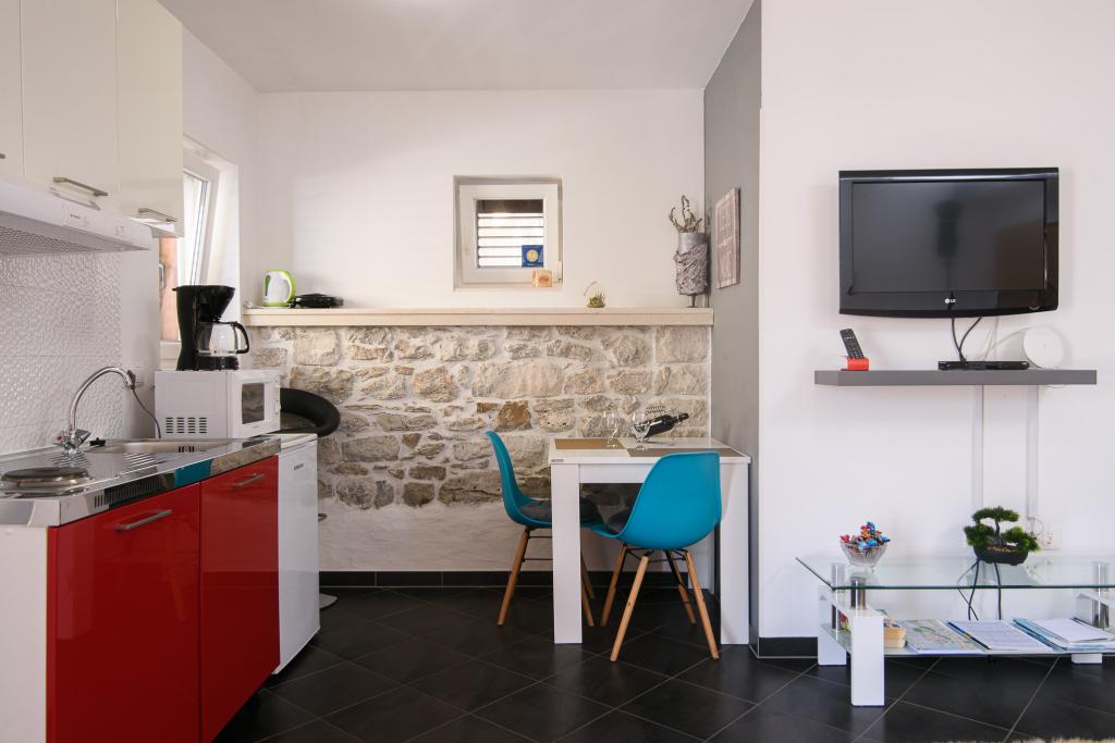Potpuno novi i moderno uređeni apartmani sa 4*, smješteni su u starom dijelu Trogira, na predjelu otoka Čiovo. U prizemlju se nalazi Studio (za 2 osobe), a na katu je Apartman (2 + 1). Apartmani su kompletno obnovljeni (2014.) s autentičnim kamenim zidovima, starim preko 200 godina, te su u potpunosti opremljeni sa novim namještajem. Ovi udobno uređeni apartmani su klimatizirani i imaju besplatan bežični pristup internetu. Svaki smještaj ima vlastitu kupaonicu sa sušilom za kosu. Objekt je udaljen samo 2 minute od stare jezgre Trogira. U neposrednoj blizini nalaze se plaže 5 min, mala marina za brodove, trgovine, restorani, tržnica, brojni kafići. Ispred apartmana nalazi se i mali brodski terminal Trogir-Split. Također tu možete iznajmiti čamac, bicikl ili skuter. Apartmani su smješteni u mirnom obiteljskom kvartu, okruženi starim kamenim kućama, tik uz more s nezaboravnim pogledom na stari grad! Besplatan parking je osiguran za sve goste. Dobrodošli :)