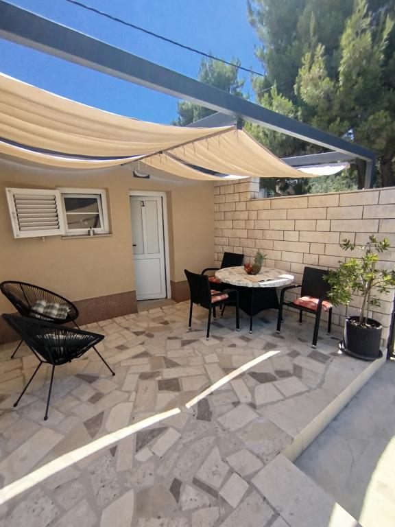 Pronašli smo svoje mjesto pod suncem! Izuzetno ljubazni i dragi domaćini, apartman je udoban i čist. Po dolasku nas je dočekalo hladno piće u frižideru što je rijetkost i nakon dugog puta nas je jako razveselilo. Stari grad Trogir je na samo 20 minuta lagane šetnje a ima i brodić koji vozi. Ispred samog apartmana je divna mirna plažica s prirodnim hladom. Gosti koji žele mir imaju ga. Gosti koji žele aktivan dnevni ili noćni život imaju Trogir koji im je nadohvat ruke. Bilo nam je predivno i dolazimo obavezno i druge godine