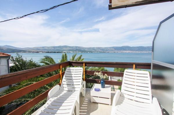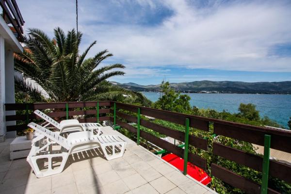 Apartmani su smješteni prvi red do mora, svaki apartman ima svoju terasu s pogledom na more, klimatizirani, internet (bežični-neograničen promet) - besplatan, kompletno opremljeni, roštilj, velike terase s pogledom na more, velika zelena okućnica. Površina je 270m2 (stambenih) 150m2 (terase). Svi apartmani imaju samostalni ulaz i terase s pogledom na more. Javni parking - besplatan. Najbliža plaža (koriste uglavnom kućni gosti ), udaljenost 10m ; šljunčana mul za privez čamca. Apartmani se nalaze u Arbaniji, malom mjestu na otoku Čiovu koji je mostom povezan s kopnom. Arbanija je udaljena 4 km od Trogira, grada muzeja pod zaštitom UNESCO-a. Područje Arbanije poznato je po lijepim plažama, šumom obraslom priobalju i brojnim malim uvalama. Apartmani su idealni za mirni obiteljski odmor bez buke i turističke gužve. Za željne noćnog života i zabave blizina Trogira, Kaštela, Splita i Primoštena garancija su dobrog provoda.