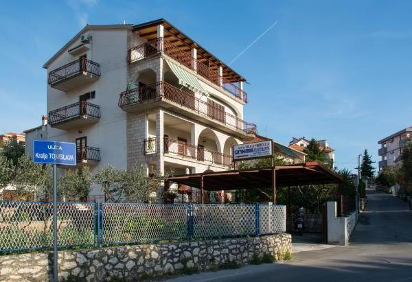 Modreno opremljeni, klimatizirani i svi sa pogledom na more Apartmani Villa Mirella nalaze se u prvom redu do mora, tik do plaze! Objekt se nalazi 15 min hoda do centra, a 5 min od kuce nalazi se kamp sa pekrasnim plazama i sadrzajima, caffe bar, restaurant itd...10 min hoda nalazi se 1. 5km duga pjescana plaza sa svim sadrzajima, svako 20 m je caffe bar, restorani, palacinke, sladoled i dr.... U samoj blizini kuce nalazi se sve, super market, restoran, ljekarna, caffe bar, posta, .