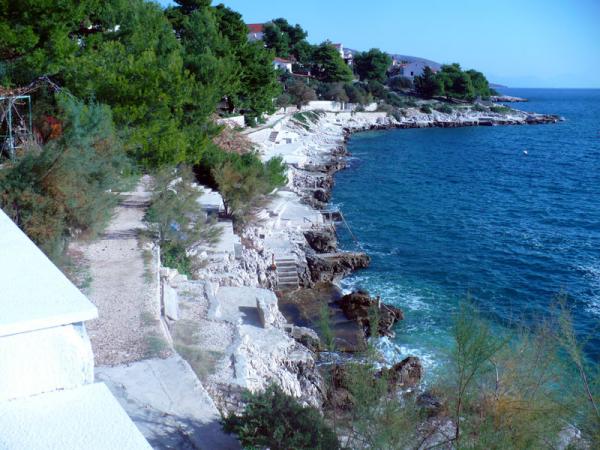 Villa Nives smještena je na južnoj strani otoka Čiovo u uvali Rastić u mjestu Okrug Gornji. Udaljena je od Trogira oko 4,5 km, a od Splita 20 km. Villa Nives raspolaže sa tri luksuzno uređena i klimatizirana apartmana, sa satelitskom televizijom i pripadajućim parking mjestom, te plažom udaljenom 15 m od apartmana. Našim gostima na raspolaganju je kamin i roštilj, za pripremu raznih vrsta peka i uživanju u dalmatinskim specijalitetima. Iz svakog aparmana sa prostrane terase pruža se prekrasan pogled na otoke Brač, Šoltu i Drvenik.