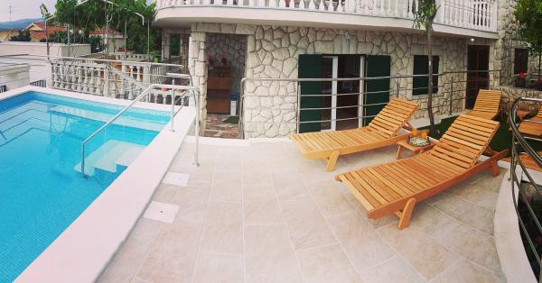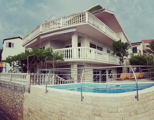 Kuća od kamena Villa Anita nalazi se na poluotoku Čiovo, u mirnom mjestu Okrug Donji, udaljenom svega 10 minuta vožnje od centra Trogira. Villa je idealna za miran odmor veće obitelji ili grupe prijatelja. Apartmani se nalaze u prizemlju i na prvom katu. Gostima je na raspolaganju bazen i sunčalište s pogledom na more. Tu se nalazi i prostrana terasa natkrivena vinovom lozom na kojoj se nalazi veliki hrastov stol prikladan za zajedničke ručkove i ugodna druženja. Unutar same kuće nalazi se kamin prigodan za pripremu jela sa roštilja. Kuća je suvremeno opremljena sa 2 velike kuhinje i 1 manjom, 4 spavaonice, 3 kupaonice i 1 toaletom, kao i prostranim dnevnim boravkom. Ukoliko se gosti požele okupati u moru, plaža je udaljena svega 50m od kuće, baš kao i prekrasna borova šuma te šetnica uz more, koja vodi do brodske veze za Trogir. Noćni klubovi udaljeni su 10 minuta automobilom.