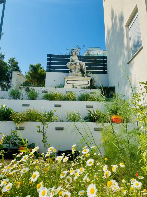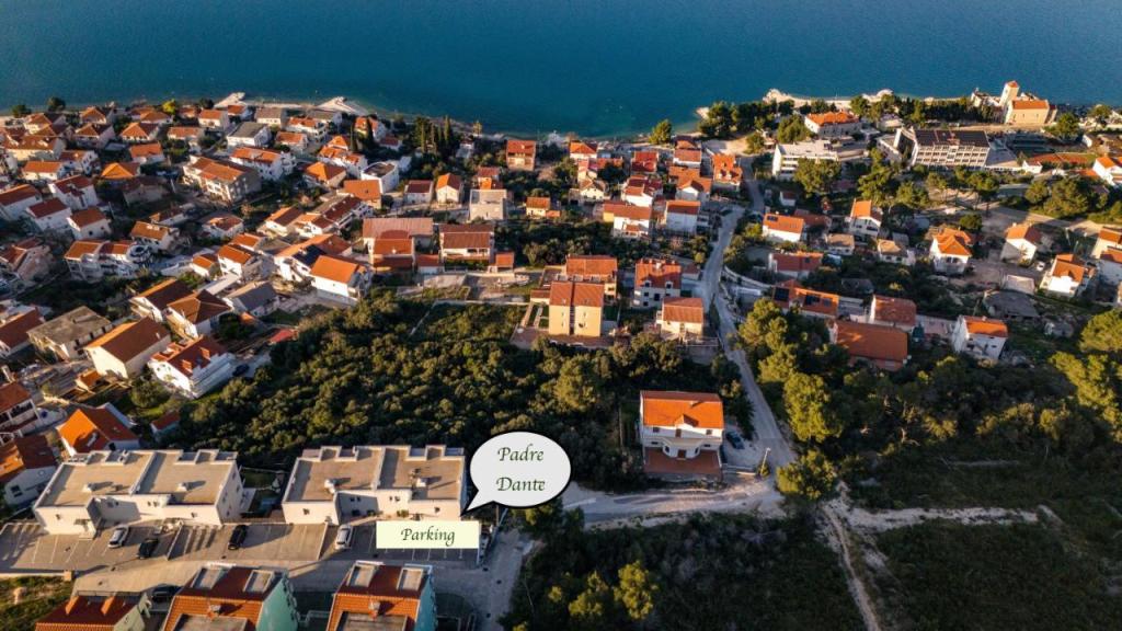 Object PADRE DANTE je novo opremljen sa jednim apartmanom i sobama s kupatilom, sve novo s uključenim parking mjestom pod video nadzorom. Objekat je udaljen 150 m. od plaže, trgovine, restorana (. restoran Hotela Sv.križ otvoren od 6-10 mjeseca ), zubar, apoteka, a centar Trogira svega cca.4 km. od objekta i cca.6 km od zračne luke.
