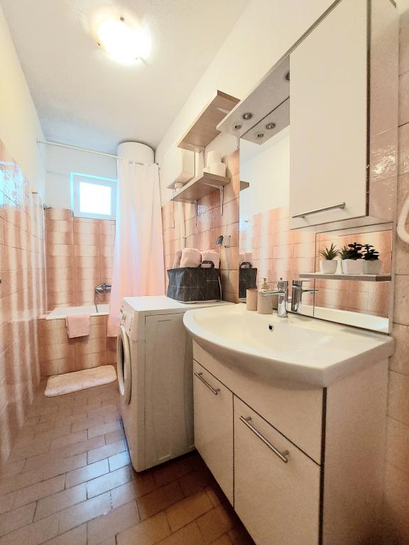 Kompletno i suvremeno opremljen dvosobni apartman u mirnom predjelu Trpnja (Poluotok Pelješac). , drugi red kuća. Objekt se nalazi 5 minuta hoda do plaže te 10 min hoda do centra. Apartman je opremljen s dva klima uređaja, MaxTv-om, Wi-Fi-om, periicom za veš, mikrovalnom pećnicom, malom terasom skrivenom od pogleda, parkingom. Pogodno za obitelji s djecom i grupe do 5 odraslih osoba.