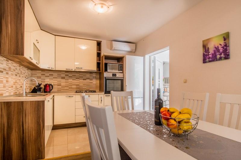 Trpanj se smjestio na sjeverozapadnoj obali poluotoka Pelješca, osim turističkom cestom, s kopnom je spojen i morskim putem iz luke Ploče trajektom. Prekrasne, uglavnom šljunčane plaže u samom mjestu ili u obližnjim mjestima jamče Vam prekrasno čisto more opasano stoljetnim borovim šumama, mirne i skrivene uvale koje jednostavno svojim ljepotama ostavljaju bez daha. Plaža Luka se nalazi 200 m od kuće, odnosno 3 minute pješačenja. U ponudi imamo apartman 11+0 i 4+1 Apartman 11+0 se sastoji od 5 spavaćih soba, 3 wc sa tušom, perilica rublja se nalazi u jednom, dnevni boravak sa kuhinjom (perilica posuđa), i terasa. Apartman se sastoji od 2 spavaće sobe, 2 wc sa tušom, kuhinja sa terasom. Gosti imaju zajednićki vanjski roštilj koji mogu koristiti. Parking je privatni.