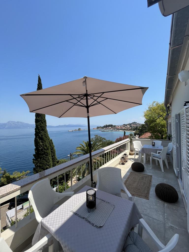 Apartman se sastoji od 3 spavace sobe i moze primiti 6 osoba. Uz moderno namjestene sobe nalazi se i ljetna kuhinja te terasa i balkon sa predivnim pogledom na more. Sve sobe su klimatizirane sa besplatnim pristupom brzom internetu i Netflixu. More je na samo par koraka ispred kuce sa prirodnom i betonskom plazom. Mjesto sa svim dodatnim sadrzajima je na 5 min hoda.