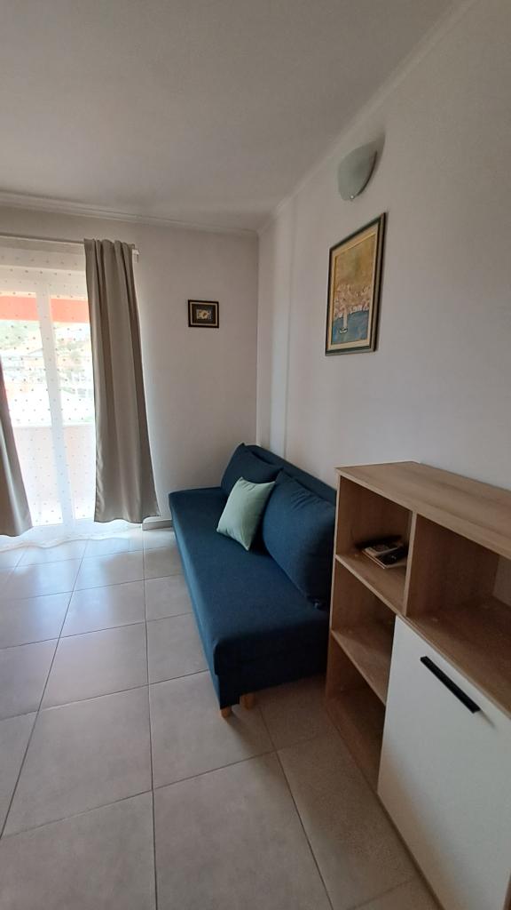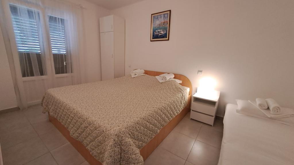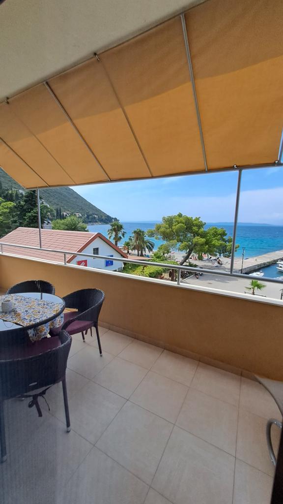 Kompletno nov i suvremeno opremljeni apartman u Trpnju, smješten prvi red do mora, na drugom katu kuće. Objekt se nalazi par koraka od plaže i nekoliko minuta od centra mjesta. Apartman se sastoji od jedne spavaće sobe, kompletno opremljene kuhinje u sklopu trpezarije i dnevne sobe, kupaonice i velike terase. Soba sadrži bračni krevet i pomoćni ležaj, dok je u dnevnoj sobi ležaj na razvlačenje za do dvije osobe.