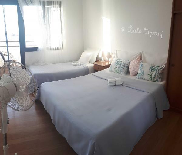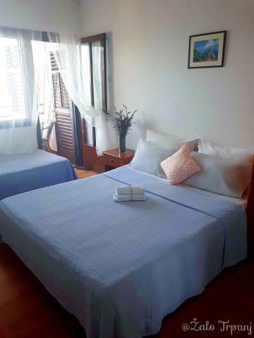 Privatni smještaj Žalo nudi Vam sobe sa pogledom na more u kući na rivi. Udobne i ventilirane sobe posjeduju vlastite privatne balkone sa stolovima za ručavanje. Na raspolaganju je velika, potpuno opremljena, klimatizirana kuhinja sa odvojenim frižiderima i ormarićima sa vlastitim posuđem i priborom za jelo, te osnovnim začinima za kuhanje i doručak koji su uključeni u cijenu.