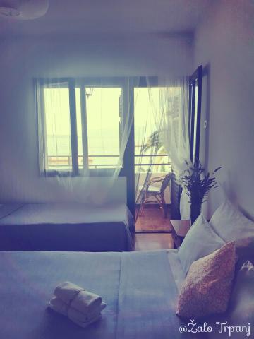 Ja sam ovdje već tjedan dana sa svojom ženom i imao nevjerojatan put! Prvo, vrijeme je bilo iznenađujuće, drugo mjesto smještaja je savršen - samo nekoliko metara od morske strane s najviše prekrasnim pogledom. Uživao sam toliko kave u jutro na balkonu s pogledom na more. Ono što sam uživao najviše je caffe bar malo ispod jedne smještajne jedinice - koja je bila vrlo korisna, dok sam čekao svoju ženu oblačiti se :). Iako, kupaonica se dijeli s još jednom sobom, nikad nisam čekao goste iz druge sobe, pa sam didn 't ni primijetio da smo dijeliti kupaonicu. Također, kupaonica je očistio od strane vlasnika na dnevnoj bazi, tako da je sve bilo savršeno čisto. Na kraju, ja jako preporučiti ovaj smještaj :)