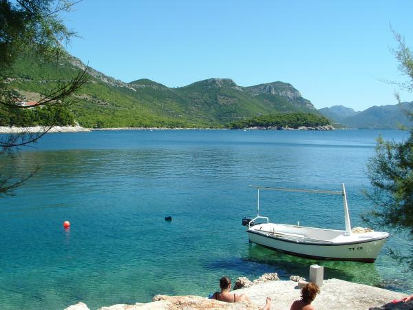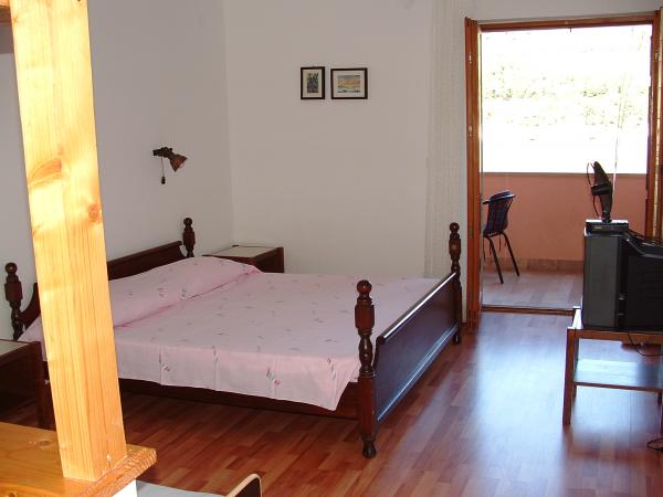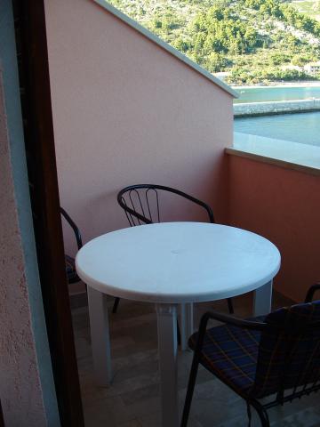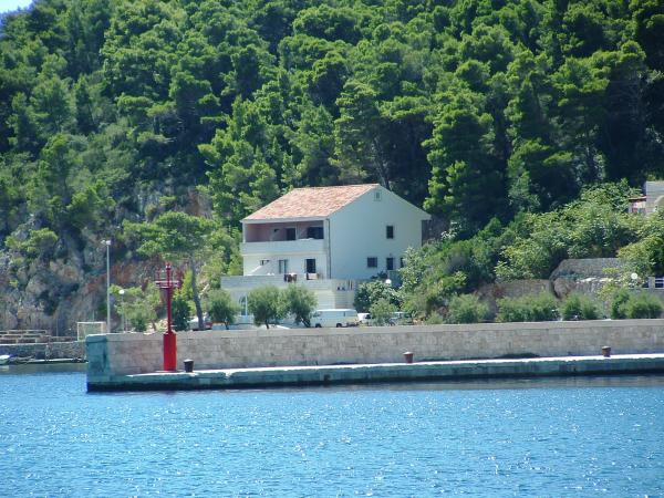 Apartmani se nalaze u obiteljskoj kući na drugom katu uz samo more.Kuhinja je kompletno opremljena sa suđem. Soba je sa tri ležaja -bračni krevet + ležaj za jednu osobu.Svi balkoni su natkriveni s pogledom na more i predivnu uvalu. Kupaonica ima tuš kabinu.Svaki gost dobiva 2 velika ručnika koji se mjenjaju svaka 3 dana.Posteljina se mjenja 7 dan. Ispred ulaza u apartmane je sušilo za rublje. Na zahtjev gosta perem rublje. Pošta, trgovina , 2 restorana , picerija, ronilački klub i kafić su 150 m od kuće. Plaža je ispred kuće.