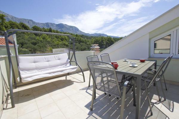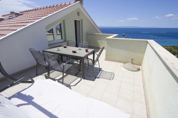 Kompletno i suvremeno opremljen apartman nalazi se u mirnom predjelu Tučepa, smješteni drugi red do mora, Objekt se nalazi 5 minuta hoda do centra te isto tolliko do plaže. Apartman je idealan za parove i za obitelji sa djecom.