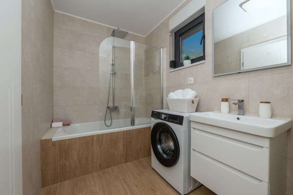 Iznajmljuje se moderno uređen i potpuno opremljen apartman površine 100 m², smješten u Tučepi, idealan za obiteljski odmor. Apartman se sastoji od dvije spavaće sobe, dvije kupaonice, prostranog dnevnog boravka s kuhinjom i blagovaonicom te velike terase s panoramskim pogledom na more i otoke. Apartman je klimatiziran, ima besplatan Wi-Fi, TV, perilicu rublja i perilicu posuđa. Parking mjesto osigurano je ispred objekta. Udaljenost do plaže je svega 5 minuta laganog hoda. Ako tražite udoban smještaj uz kristalno čisto more i prekrasnu šetnicu, naš apartman pružit će vam savršen odmor.