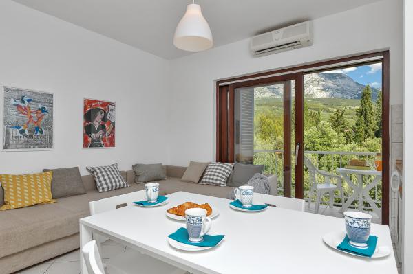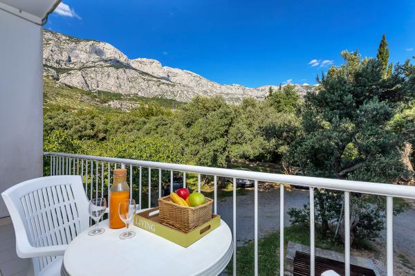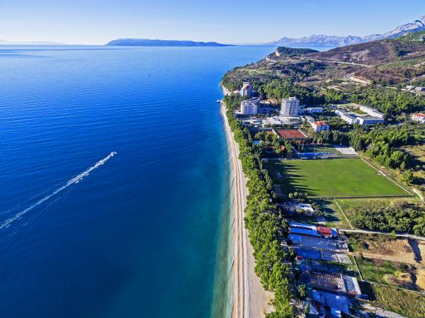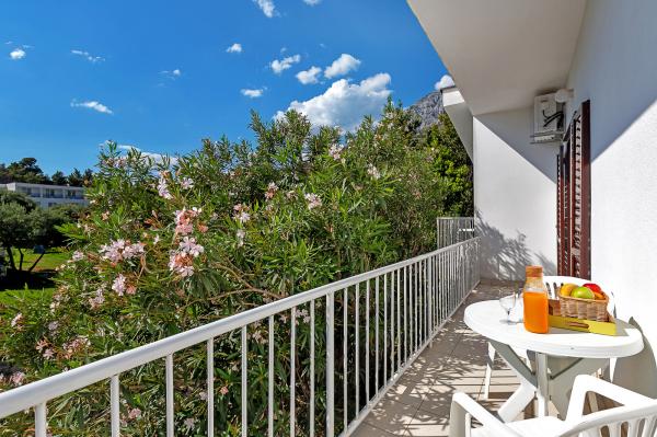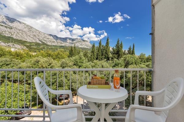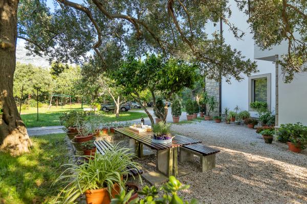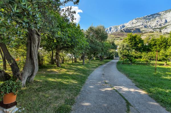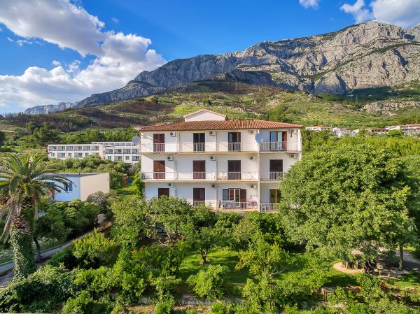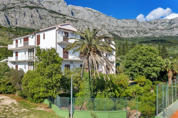 Kuća s apartmanima se nalazi u mirnom predjelu Tučepi, 50 metara od prirodne šljunčane plaže. Okućnica kuće je velika sa puno zelenila, raspolaže lijepim mjestima za parking i vrtnim stolovima i klupama za druženje. Naša lokacija je idealna za obitelji s djecom. Odmah pored kuće je sportski centar ( tenis, košarka itd. ) za rekreaciju.