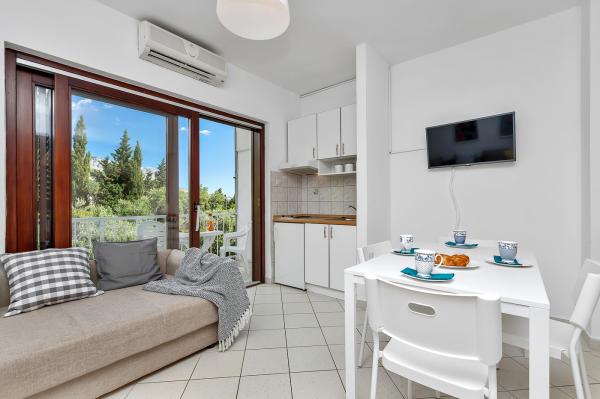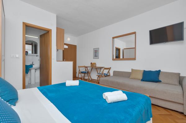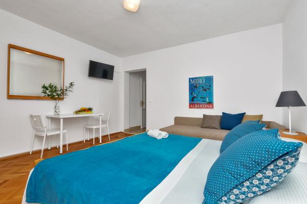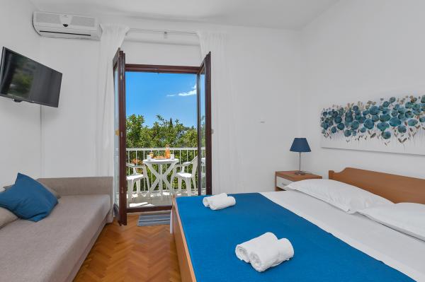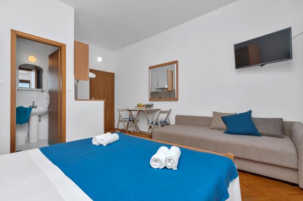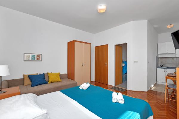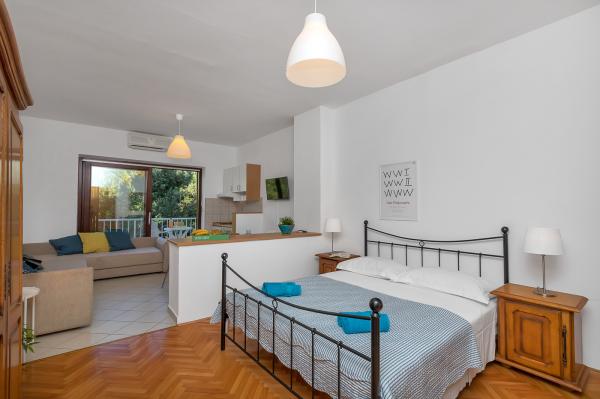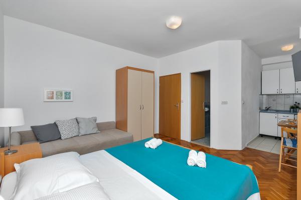 Odlično mjesto za odmor, veliki parking ispod maslina, smještaj je blizu mora, domaćini su nas lijepo dočekali uz rakiju i kavu, veoma prijatni ljudi, bili su tu ako nam je nešto trebalo, ručnike su nam redovno mijenjali, Sve u svemu lijepo smo se odmorili