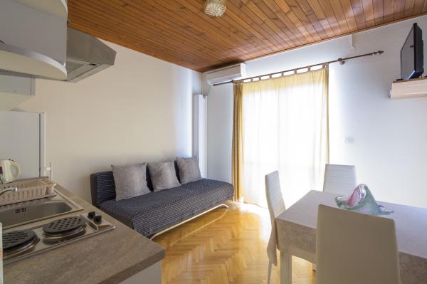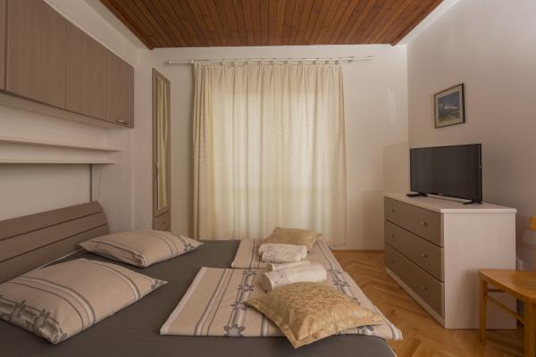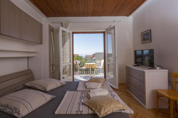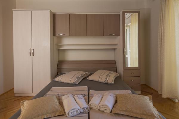 Komforni i u potpunosti opremljeni apartmani smjesteni su u obiteljskoj kuci, udaljenoj tek 5 minuta hoda od plaze, centra, trgovine, restorana. Apartmani se sastoje od spavace sobe, dnevnog boravka, kuhinje i kupaonice, sa balkonom i pogledom na more Klimatizirani su, imaju besplatni WiFi, parking ispred kuce. U dvoristu se nalazi rostilj sa prostorom za sjedenje koji je na raspolaganju svim nasim gostima.