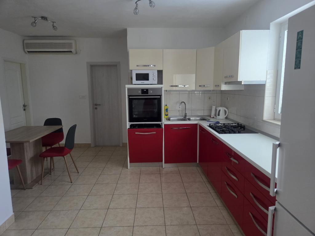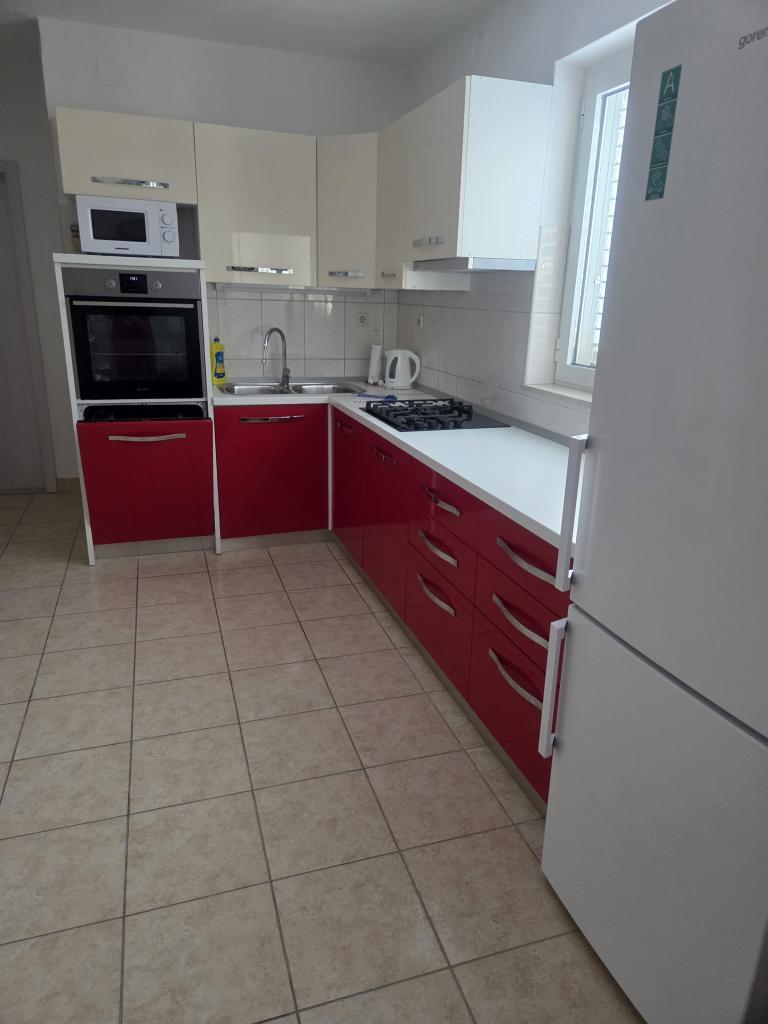 A4" - Novi apartman. Potpuno opremljen. 2 spavaće sobe, 2 kupatila, kuhinja s trpezarijom, veći balkon s pogledom na more. Roštilj dostupan u prizemlju. 2 klima uređaja (svaka soba),wifi, 2 LCD TV(svaka soba). Parking ispred kuće. Minuta hoda do prelijepe plaže, centra mjesta i svih važnih sadržaja (trgovine, bankomati, pekare,restorani, kafići...).