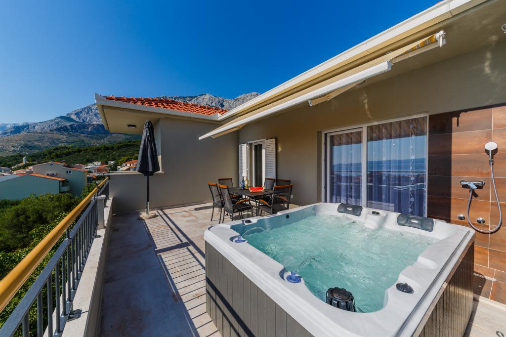 Kompletno opremljeni apartmani za ugodan i opuštajući odmor u mirnom dijelu Tučepi, 100 m od mora u blizini maslinika i borove šume. Svi apartmani su klimatizirani, opremljeni SAT TV te besplatan pristup WiFi. Za sve naše goste osiguran je parking, a na raspolaganju vam je i korištenje vanjskog grila. Za dobrodošlicu dočekati će Vas ponešto od naših domaćih proizvoda (vino, med, rakija...), a za one željne avanture spremni smo organizirati rafting, quad avanture ili izlete na obližnje otoke. U listopadu i studenom organiziramo berbu grožđa, mandarina ili maslina na našim plantažama. Domaćin živi u objektu te Vam je na raspolaganju tijekom cijelog dana kako bi Vaš odmor učinio što ugodnijim.