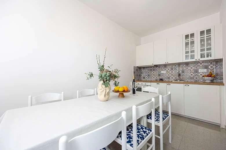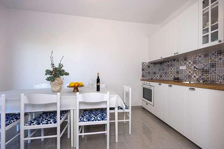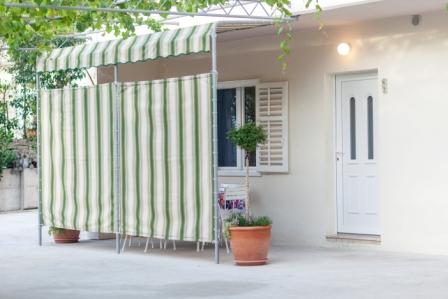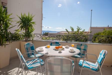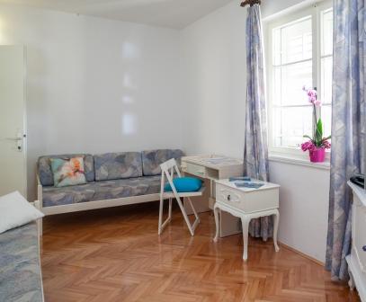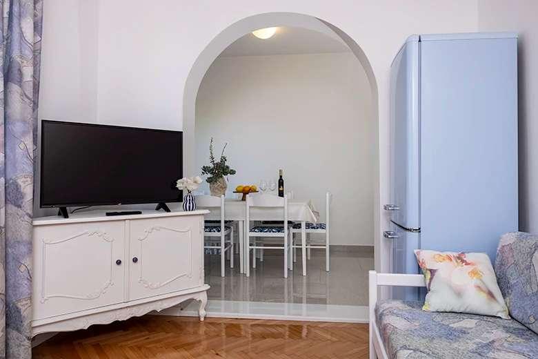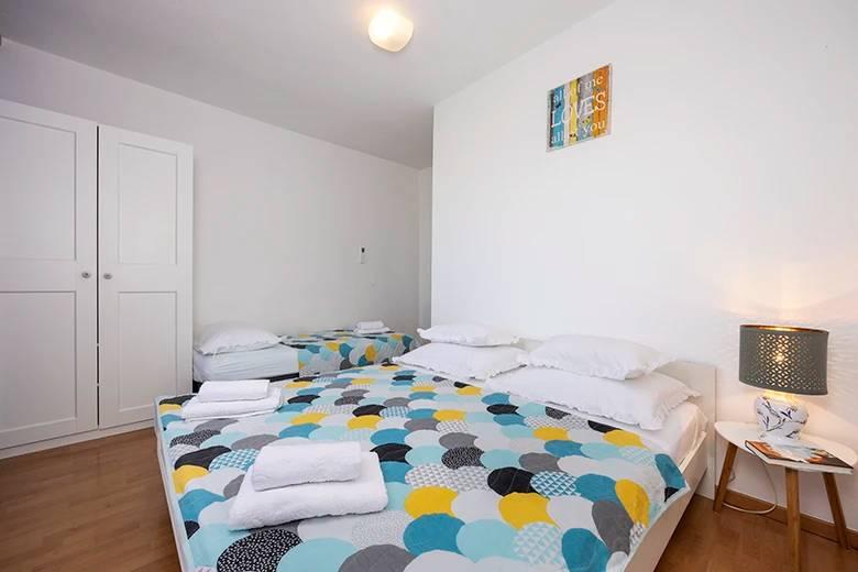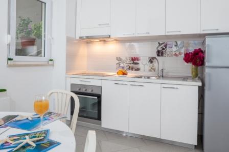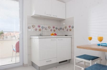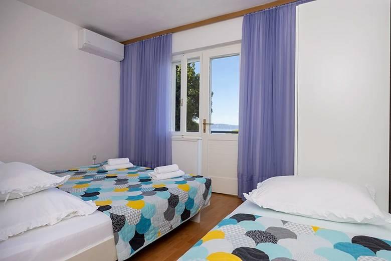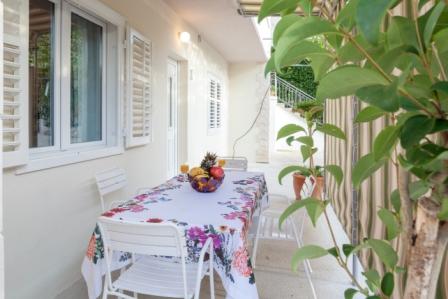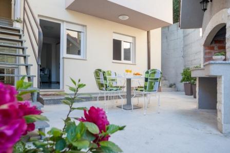 Apartmani IRENA su kompletno i suvremeno opremljeni apartmani. Smješteni su samo dvadeset metara od mora. Plaža je formirana od sitnih oblutaka te je krase stabla borova koja stvaraju ugodnu hladovinu. Parking je ispred kuće te postoji mogućnost korištenja garaže. Zadovoljni gosti te veliki broj starih gostiju garancija su kvalitete koju nude domaćini.
