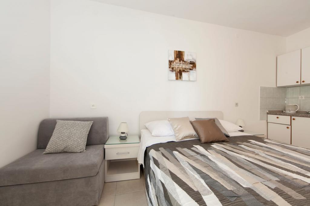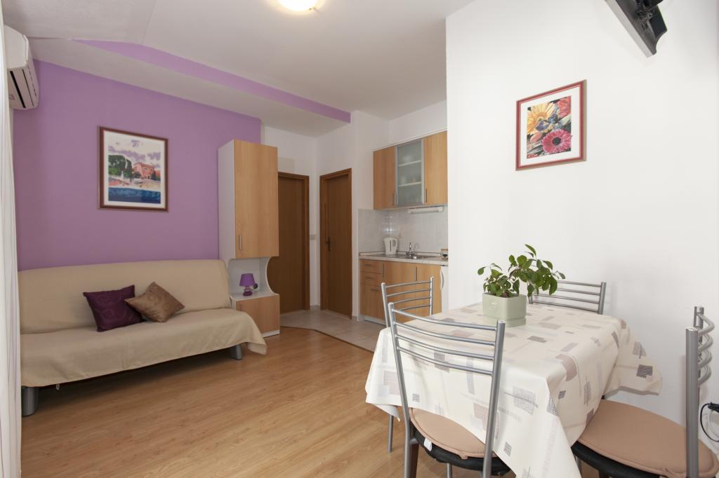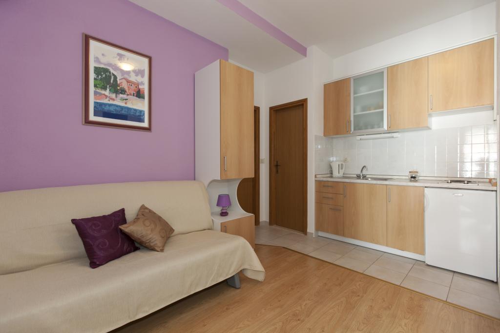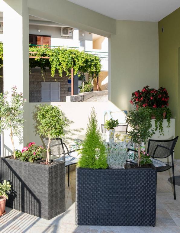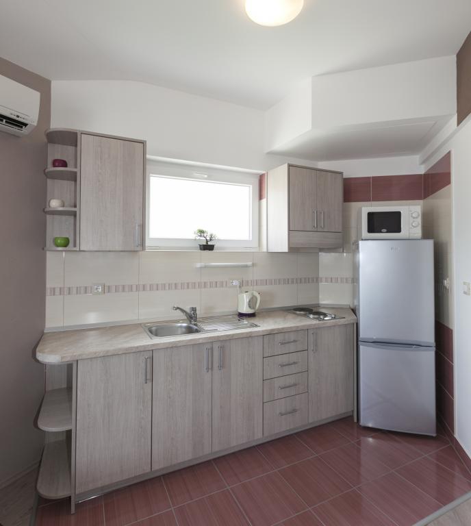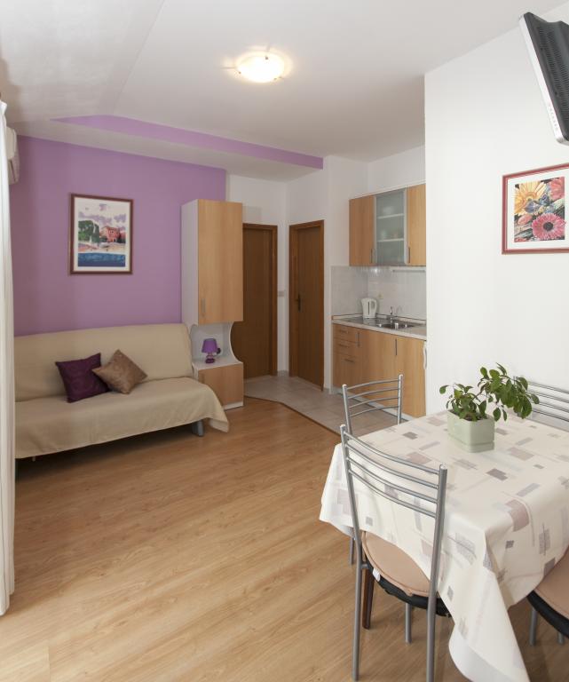 Apartmani su komletno opremljeni i nalaze se samo 2 do 3 minute do plaže i te 6 do 7 minuta pješice do centra. Uz samu plažu su smješteni brojni ugostiteljski objekti i samoposluge. Autobusno stajalište je udaljeno jedan minut pješice. Ovisno o apartmanu svaki sadrži veliku terasu ili veći balkon.